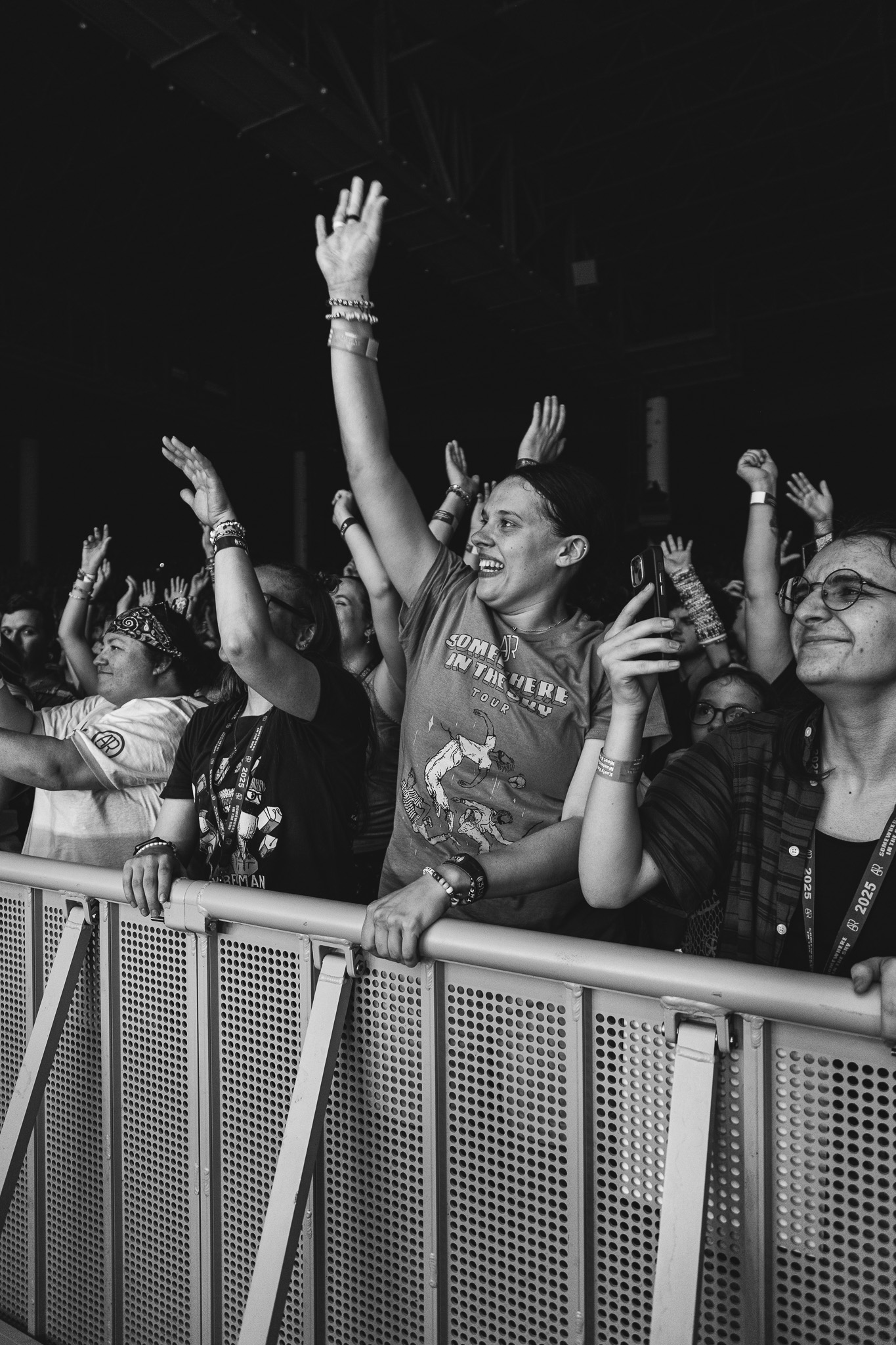 Fans who have been waiting hours finally got what they wanted when AJR hit the stage promptly at 9:30 PM. The band has always been one for theatrics. Every tour they change up their performance, the visuals and the setlist… And somehow, AJR keeps managing to outdo themselves every single time. They started off their set with some bright lights and insane onscreen visuals that led into their hit song ‘Way Less Sad.’ As per usual, singer Jack Met was leaping all over the stage while brother Ryan jammed along on his keyboard. Fan favorites like ‘Karma,’ ‘The Good Part’ and ‘Interia’ were sprinkled throughout the setlist. Much to everyone’s surprise, the band even played their hit ‘World’s Smallest Violin’ from the middle of the crowd.
