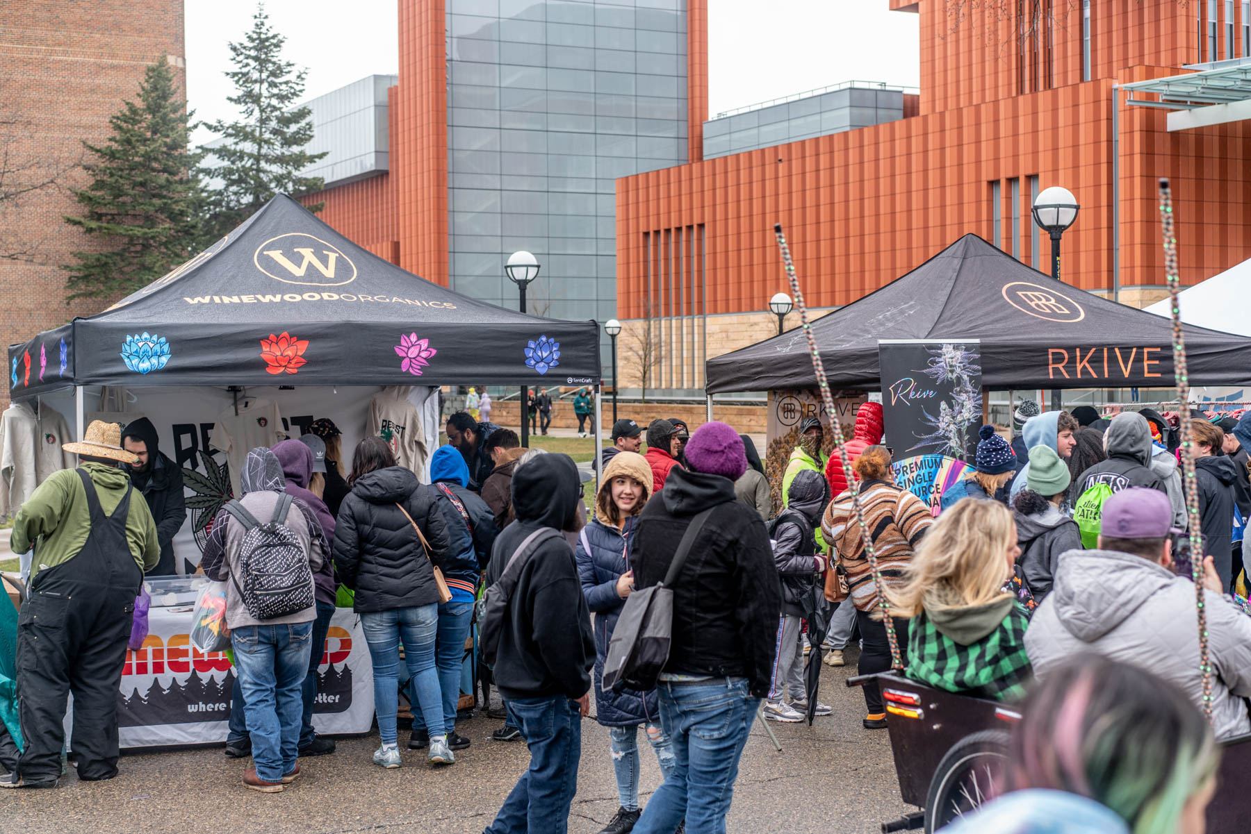 Due to the rain, there were fewer people in the Diag this year than usual, and way more umbrellas. Still, others meandered their way to the Monroe Street Fair, which had vendors, food, and more. People began to congregate on the grass as the rain let up, and there was even a group that set up “hotboxing tents” across the lawn from Island Noodles. Prominent national brands like WeedMaps and Cookies were present, as well as locals with all sorts of goods and wares.