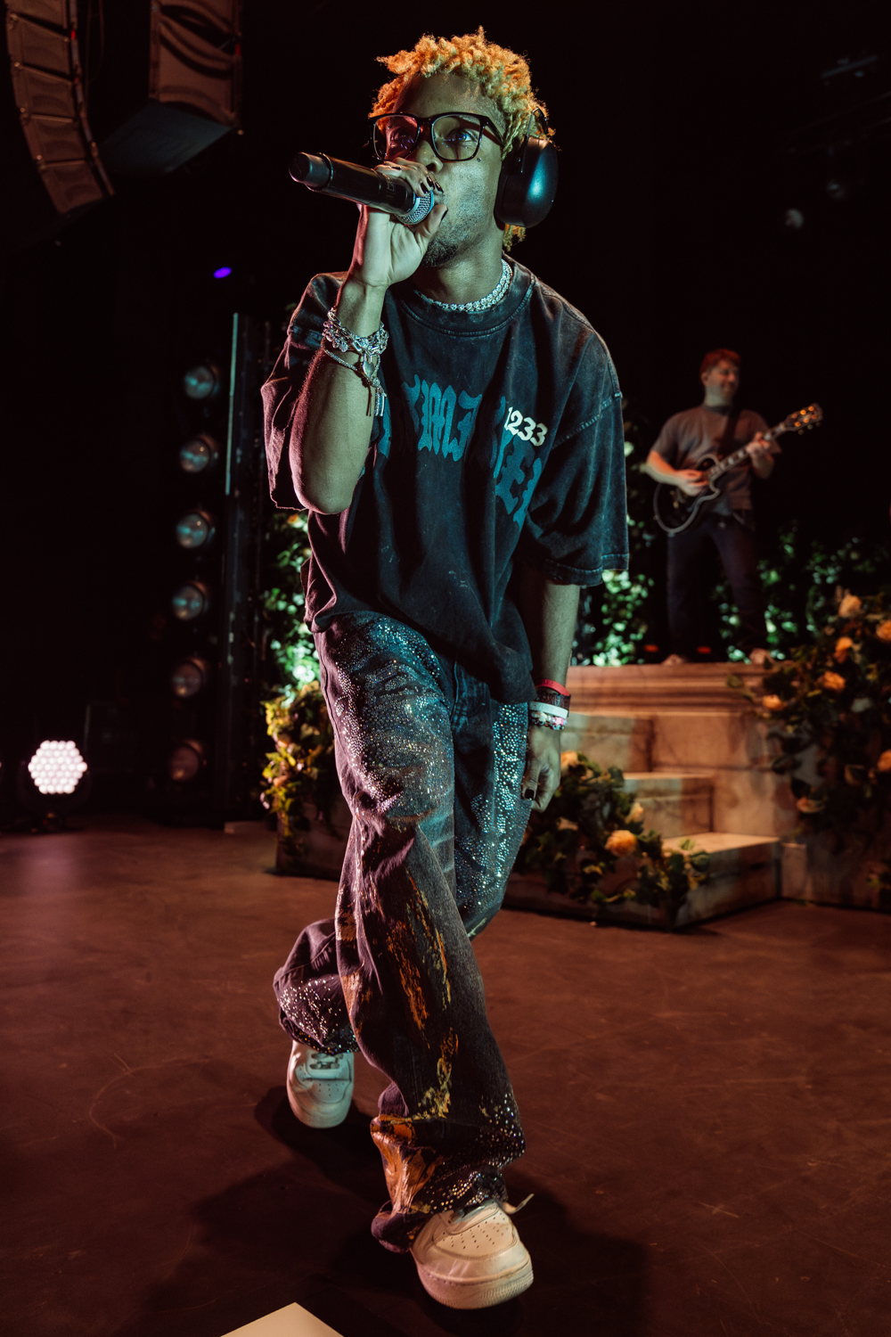 Not only was the venue perfect for D4VD, but the floral setup also created an intimate atmosphere for the audience. With a romantic blend of modern stage equipment and earthy touches (ivy and roses), the set complemented D4VD’s indie rap style perfectly, creating one cohesive look and harmonious sound.