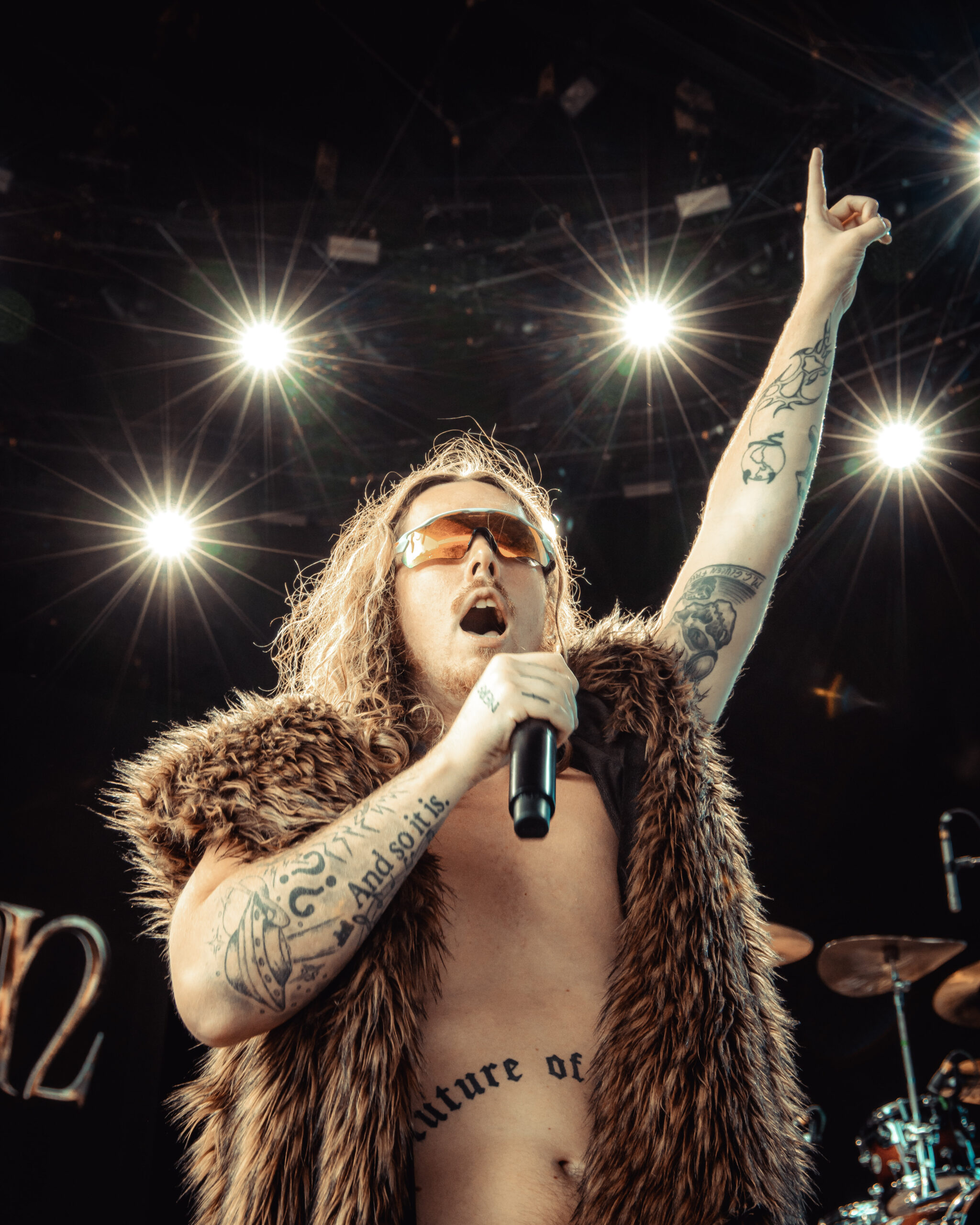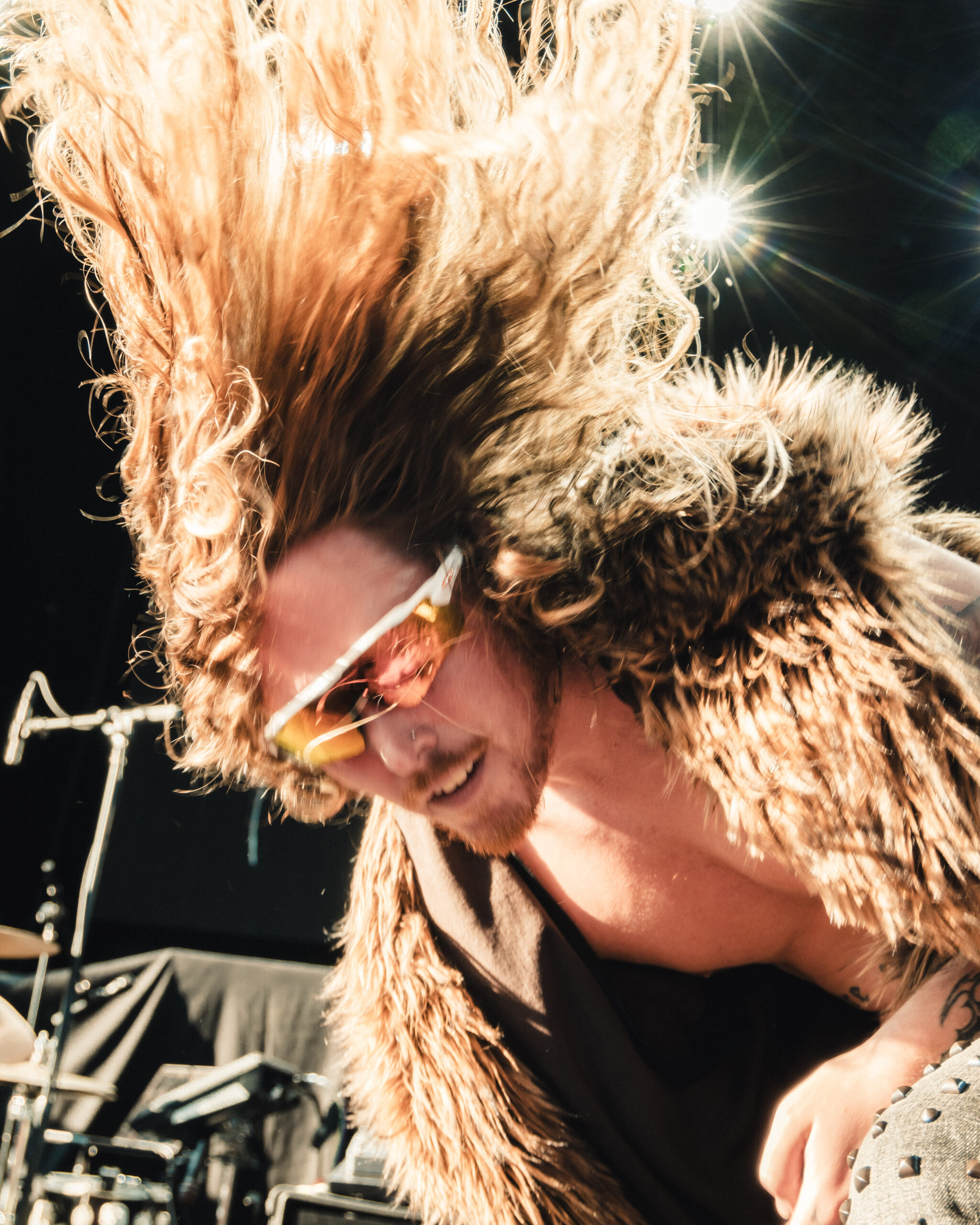 First to get the party going was Jeris Johnson; a modern-day Viking dawned in a fur vest and yielding an era-appropriate sword and very modern-looking visors. Joined by a drummer and guitarist, Jeris beckoned the crowd with anticipating chanted phrases following the stage-welcoming bass and baritone a cappella opening to “Welcome to Valhalla.” A set full of long hair whipping, sword slinging, and true warrior levels of performance, this show was officially on the road.