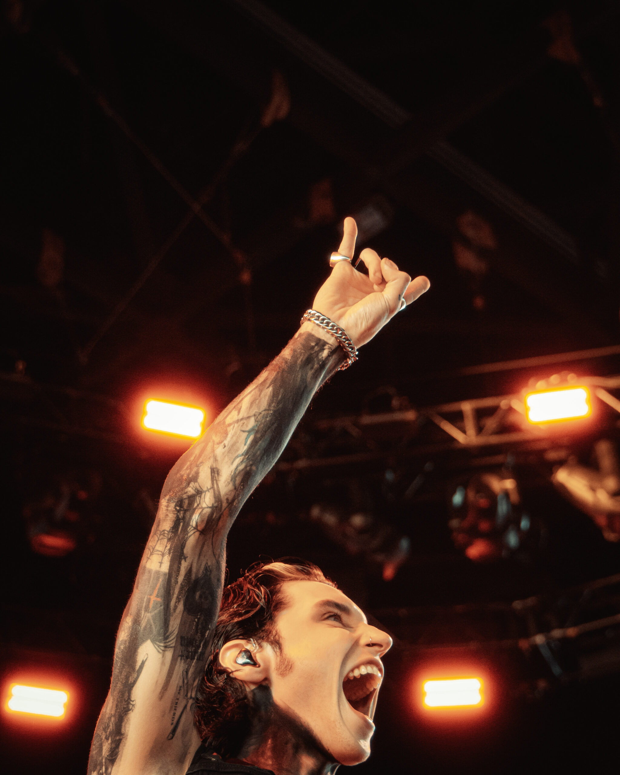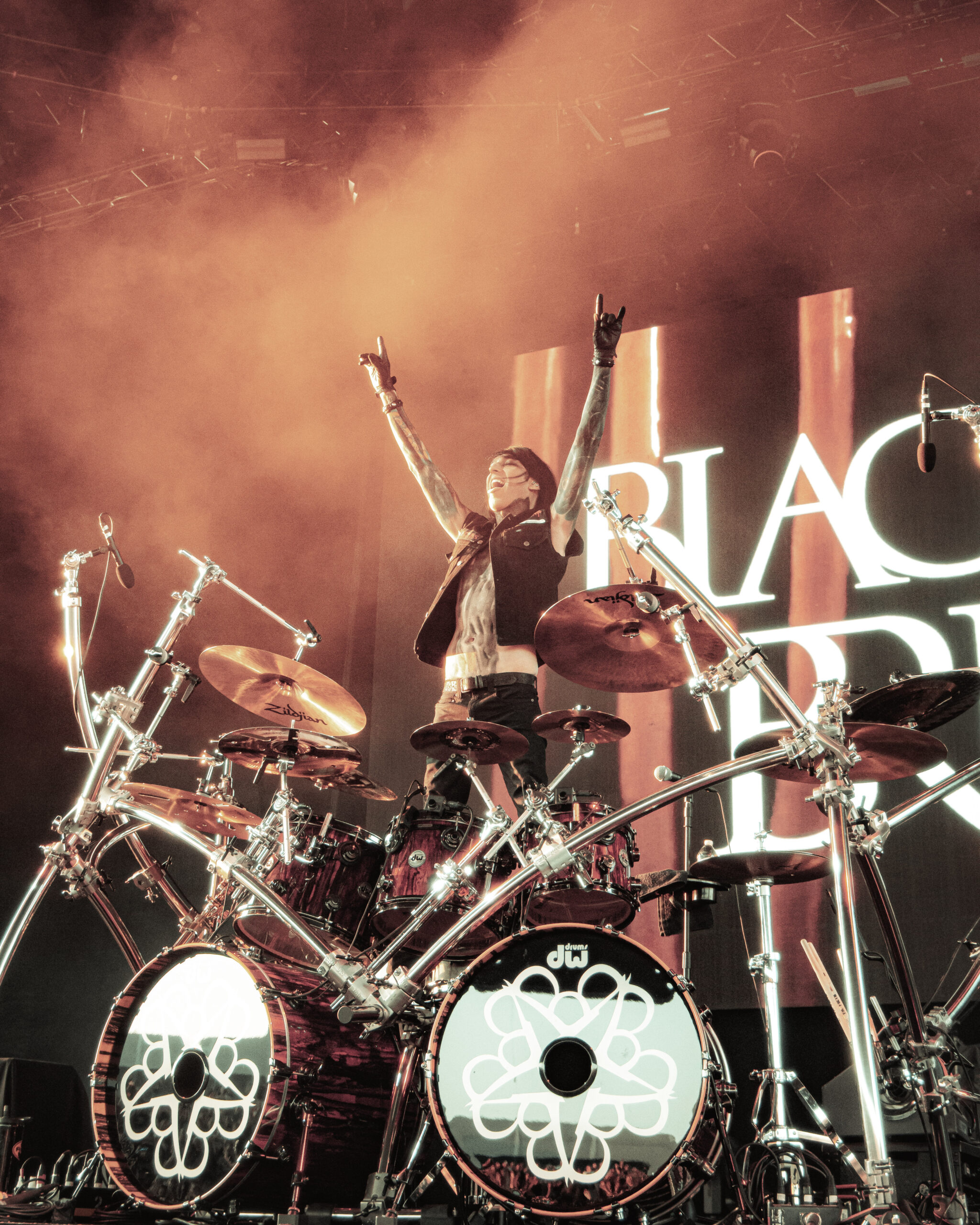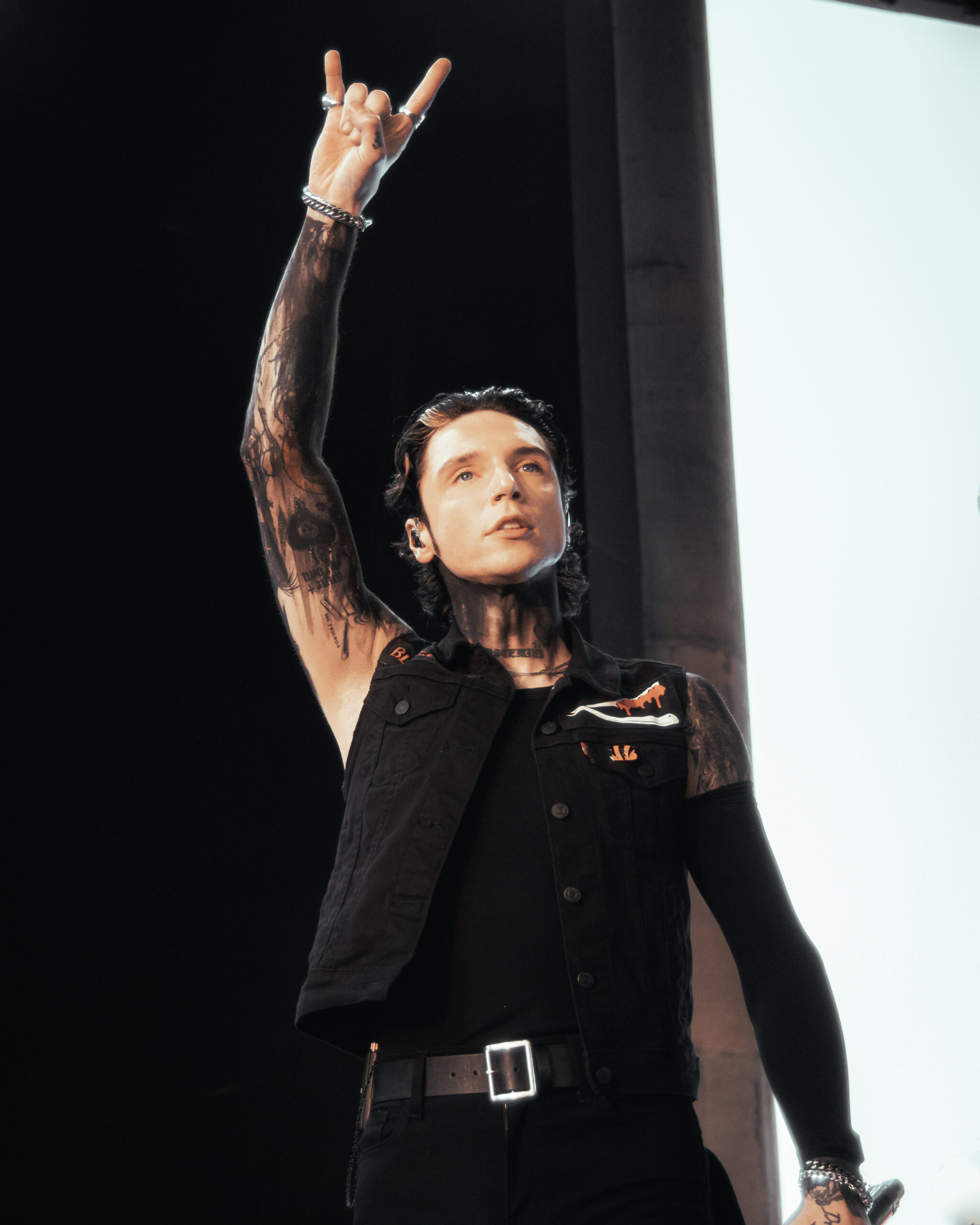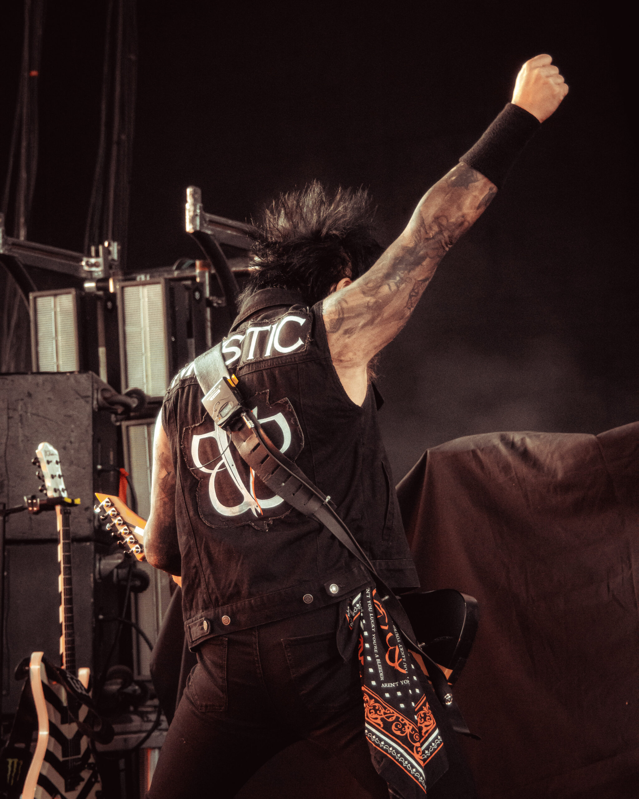Reaching the halfway point of the night, as the sun was beginning to reach its golden hour of the night, Black Veil Brides took to the stage. Drummer Chris Mora, also known by his stage name “CC,” stood atop his drumset with double raised metal horns as a warm welcome and introduction to the impending riffage. From their beginnings as a household name in the 2010’s and in the peak Warped Tour era, they easily remain one in the rock scene they inhabit with fans both old and new. Dawned in all black clothing, makeup, and paint, BVB expertly molds the look they are known for with the modern edge of their newer material. These guys know how to rock, plain and simple. If you were at this show and didn’t enjoy this performance, I wouldn’t believe you were there.