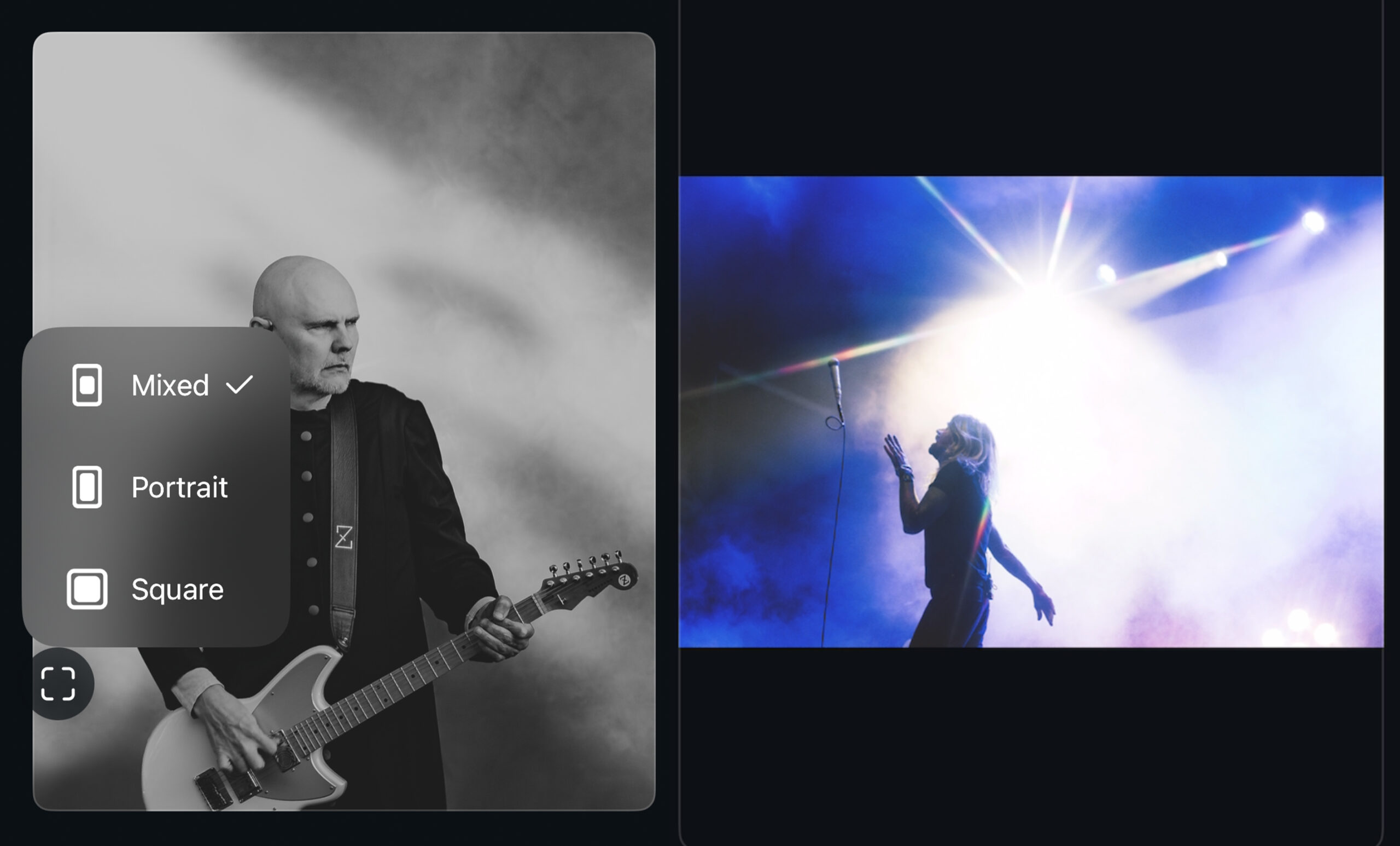 • When you click to the next section, you will see a frame on the left bottom of the image. Tap the icon and you can choose “Mixed,” “Portrait,” or “Square.” Mixed will set you up with the desired effect.