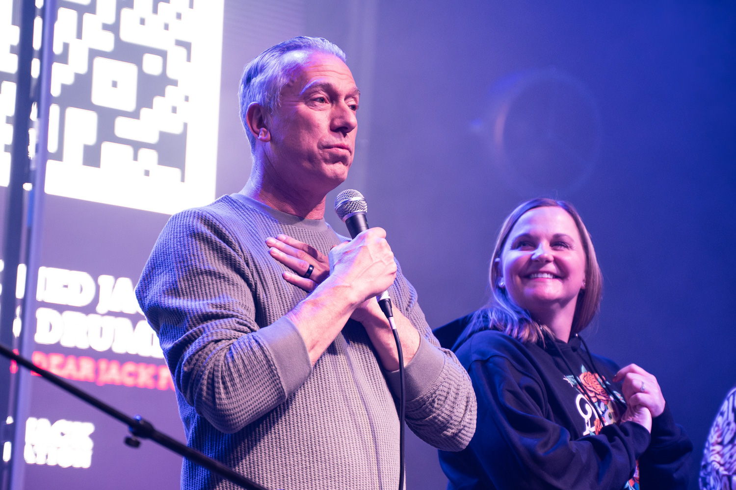 $1 of each ticket for the show that night was donated to the Dear Jack Foundation, and members of the organization came to the stage to thank everyone for showing up and contributing to their goal, which they were able to reach for the evening, as well as share some of their personal battles with cancer, and how important it is to have this type of support system. They also gave fans an additional opportunity to donate whatever they were comfortable by scanning a QR code on the screen behind them.