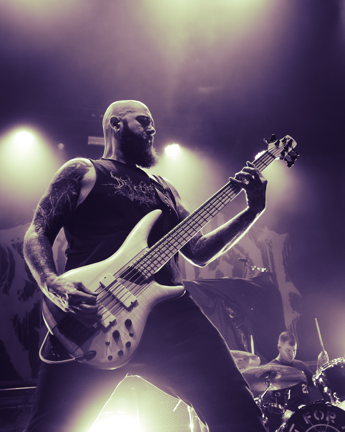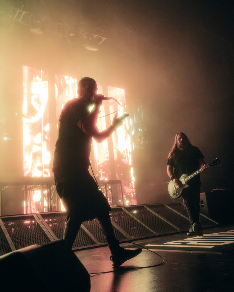 Next up was Fit For An Autopsy, who hit an early hiccup as technical difficulties cut into the opening moments of their set. Rather than let the momentum stall, vocalist Joe Badolato stepped up and filled the silence with humor and honesty, acknowledging the awkwardness with a comment regarding how “this is the part they don’t tell you when you get the job, you gotta talk to everyone through the awkward silence of tech issues” It only took about a minute to get back up and running to start again. Shortly after, it was as if it had never happened.