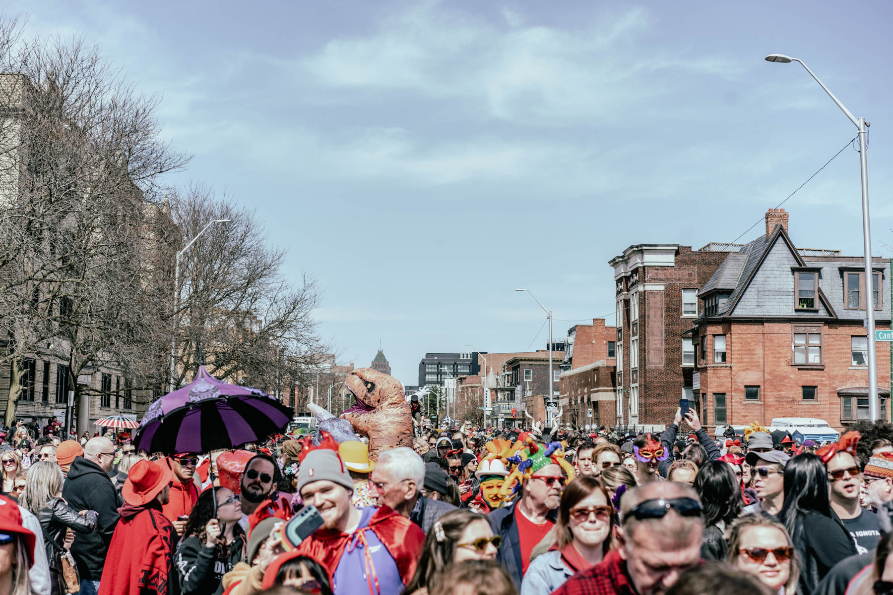 The Marche Du Nain Rouge is a parade that goes on every Spring in the Cass Corridor of Detroit, Michigan, beginning near Motor City Brewing Works and Third Man Records. The basic premise is that parade-goers often don red, show up in the Cass Corridor and enjoy a Mardi Gras-style party while attempting to banish the “Red Dwarf” from the city and all his bad luck that he brings to Detroit.