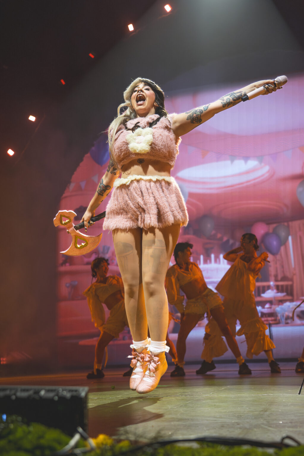 A standout moment of the evening came during Martinez’s rendition of “Play Date”, where she effortlessly engaged with her audience, fostering an intimate and interactive atmosphere. Her infectious energy reverberated throughout the arena, among the sea of over 19,000 attendees. As I reached the photo pit to capture my bit of the show – those songs being “Pity Party,”  “Play Date,” and “Mad Hatter” – I found myself swept up in the overwhelming energy pulsating through the crowd.
