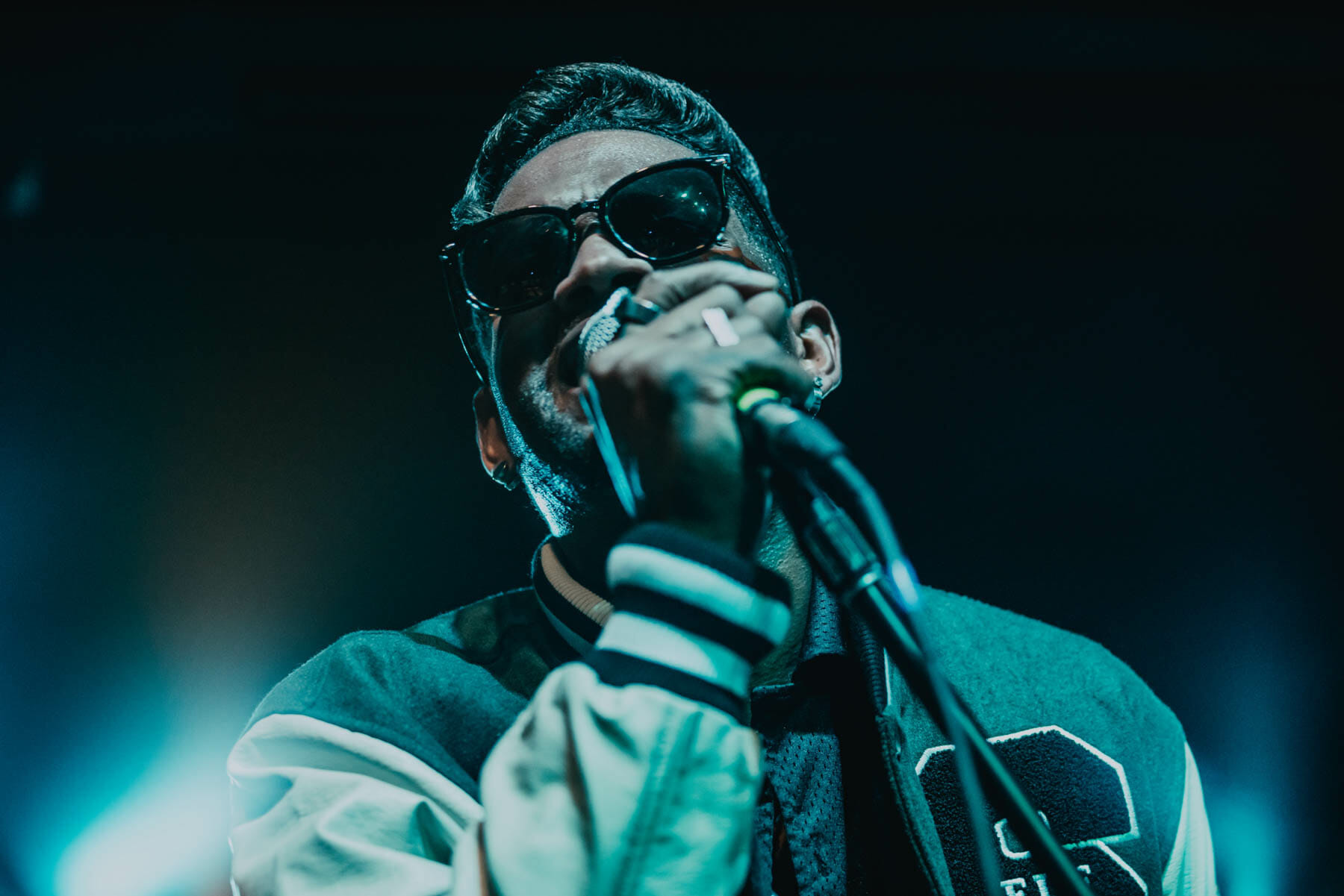 The vibe was undeniable as we saw members of The Klouds Band accompany Drey Skonie upstairs, wearing varsity-style jackets to confirm the crew. Hailing from Detroit, Drey Skonie hit the stage with a walking stick and an intense amount of swagger. Playing off that hometown vibe, the Motown-adjacent sound mixed with a sax player caused fans to take notice as the group warmed us up for the main event.