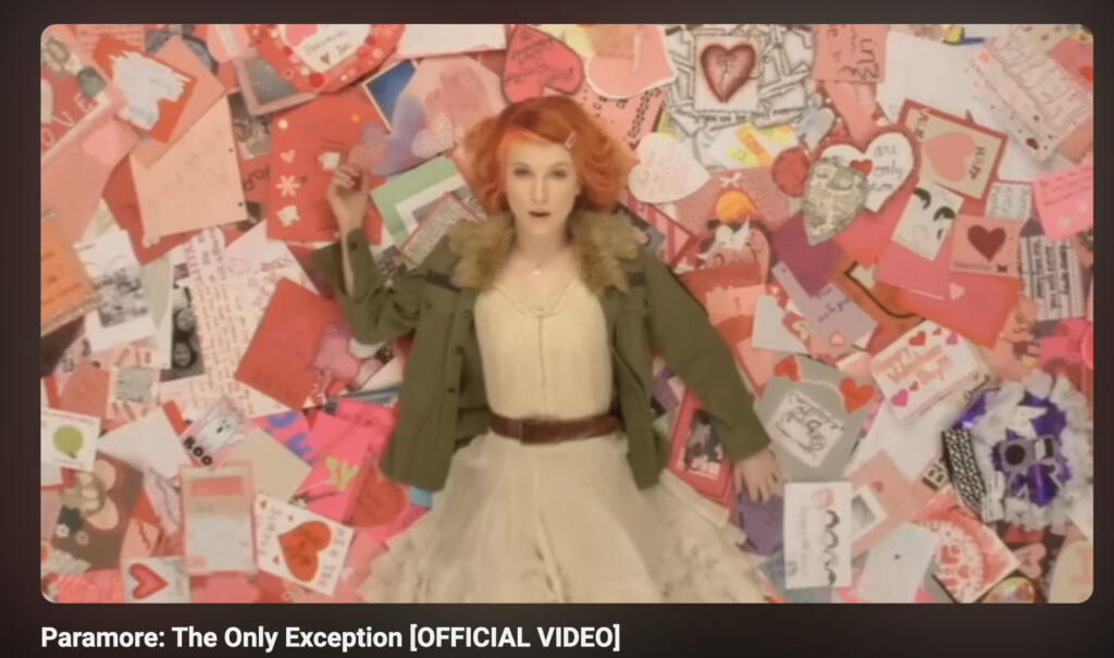 Because intention can be an interesting indicator of the potential subject of the song, there’s a striking resemblance to a shot in “Thick Skull” that may or may not be intentional. In the scene where Hayley is lying on her back with her arms up singing “come on out with your hands up,” the shot almost looks like a callback to a frame in “The Only Exception,” which Hayley openly expressed at the Detroit date at Little Ceasars Arena that she doesn’t care to perform the song due to it’s history, but understands it’s important to the fan base.