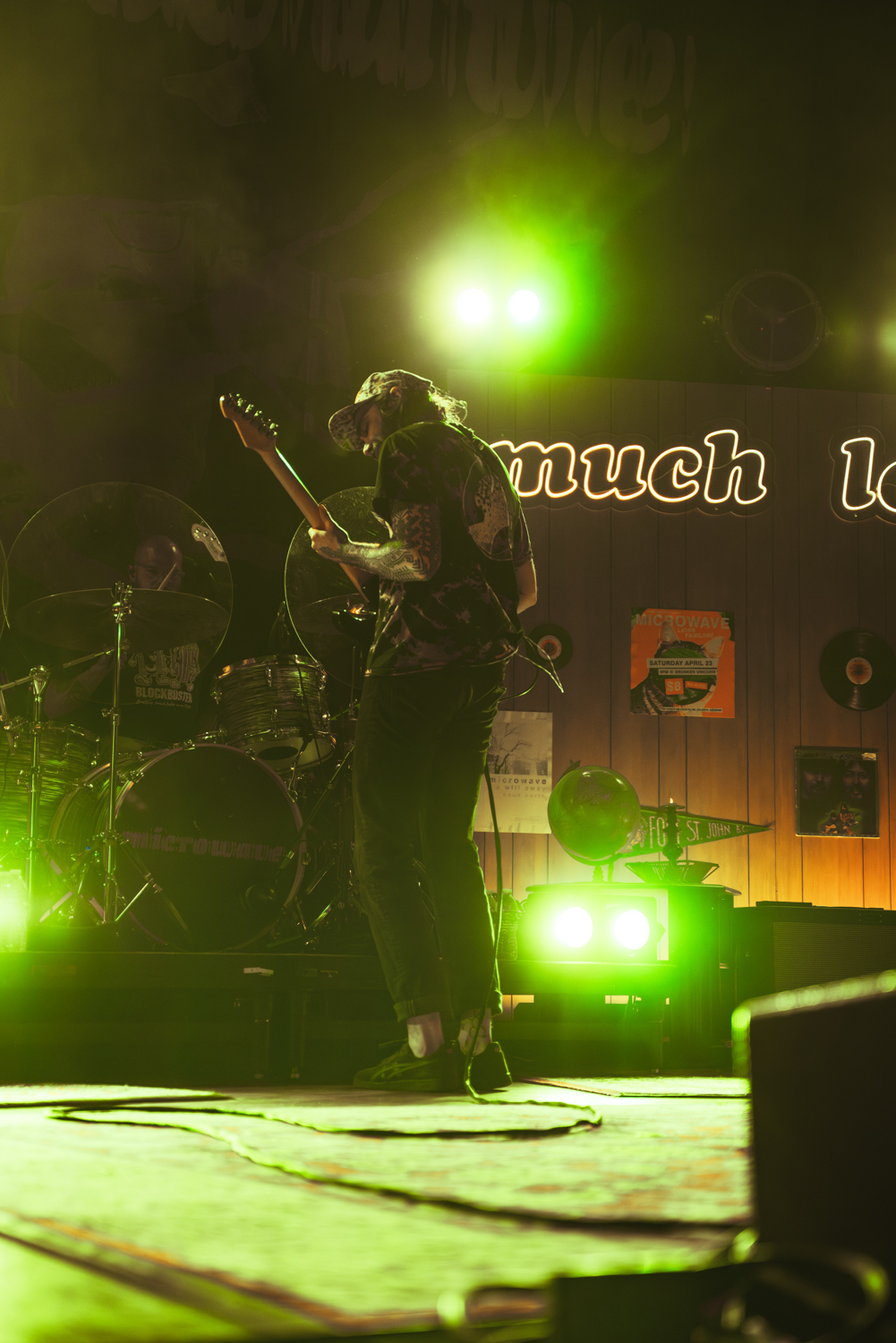 Microwave hit the stage, kicking off with a celebration of their 10th-anniversary ‘Much Love’ from 2016. Playing in chronological order, they paced through those 10 tracks with fans singing every word at the barricade. They then added some of their greats from the rest of their catalog, including “But Not Often,” “Circling The Drain,” and “keeping up.”