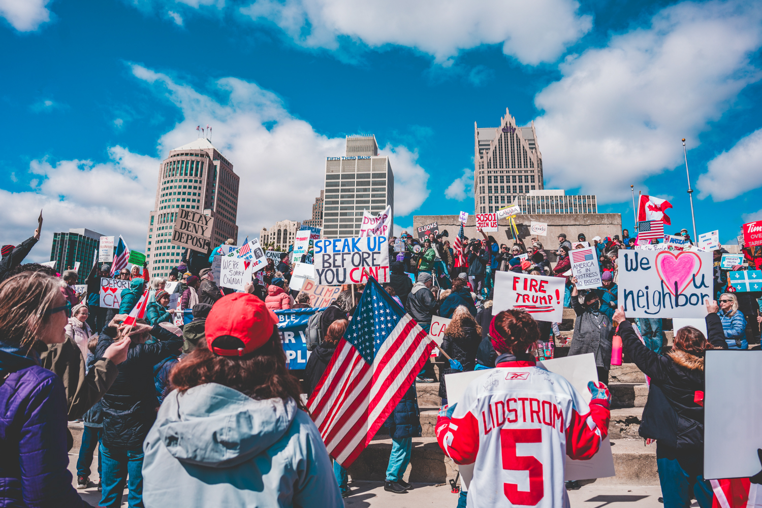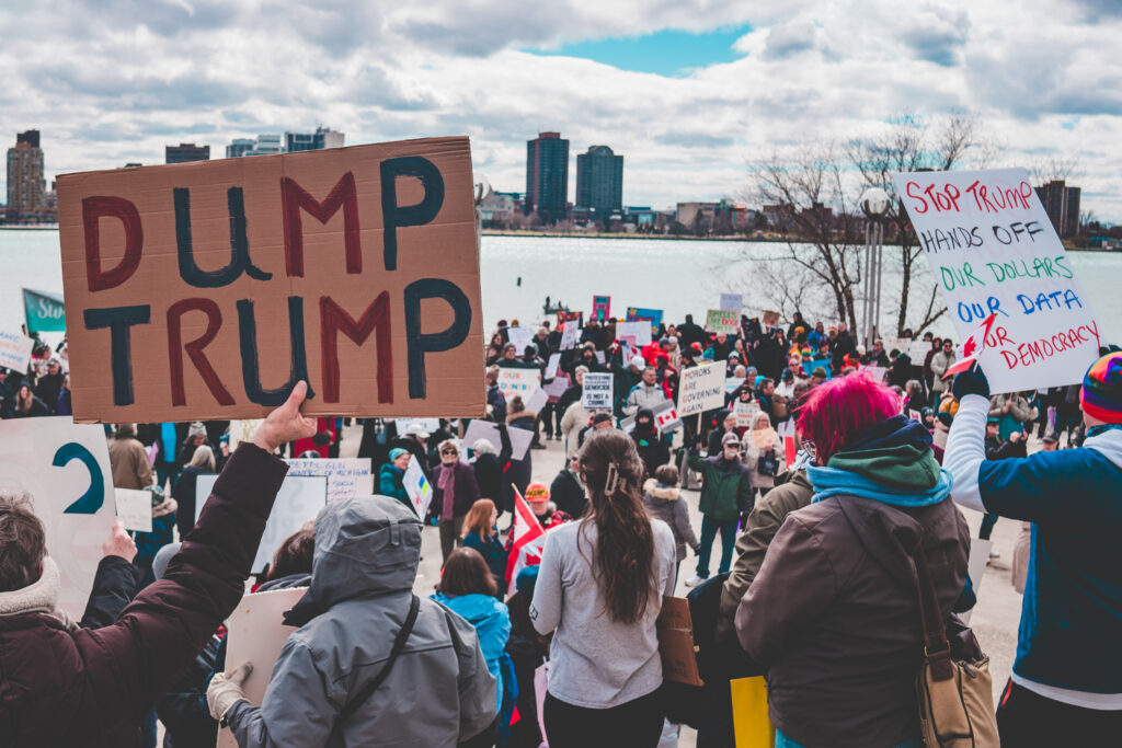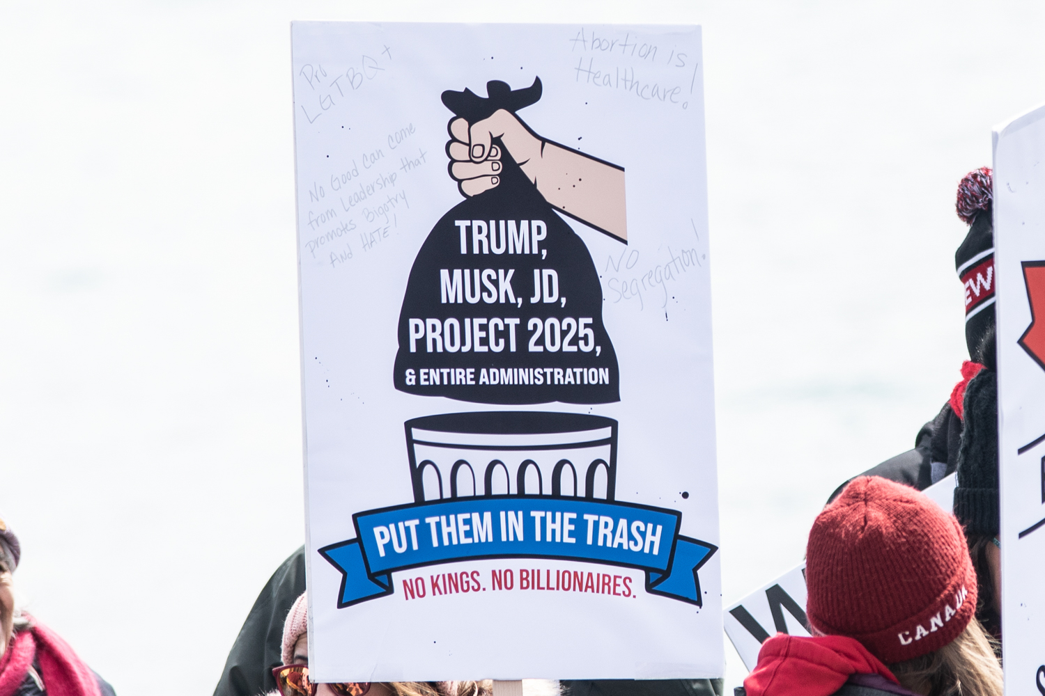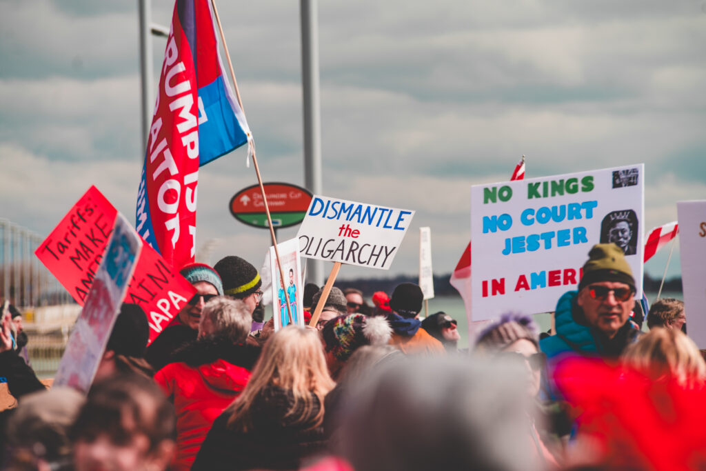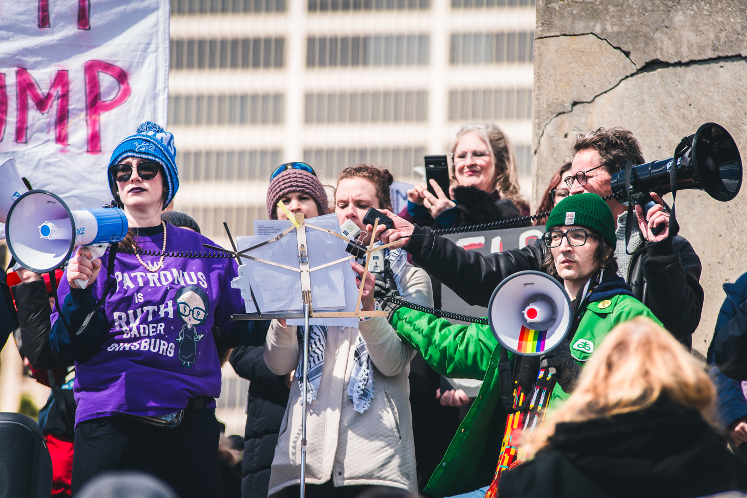 On March 22, 2025, a crowd anywhere from 600 to over 1,000 people flocked to Hart Plaza and across the Detroit River in Canada to protest Donald Trump, Elon Musk, Fascism, Oligarchy, and more.