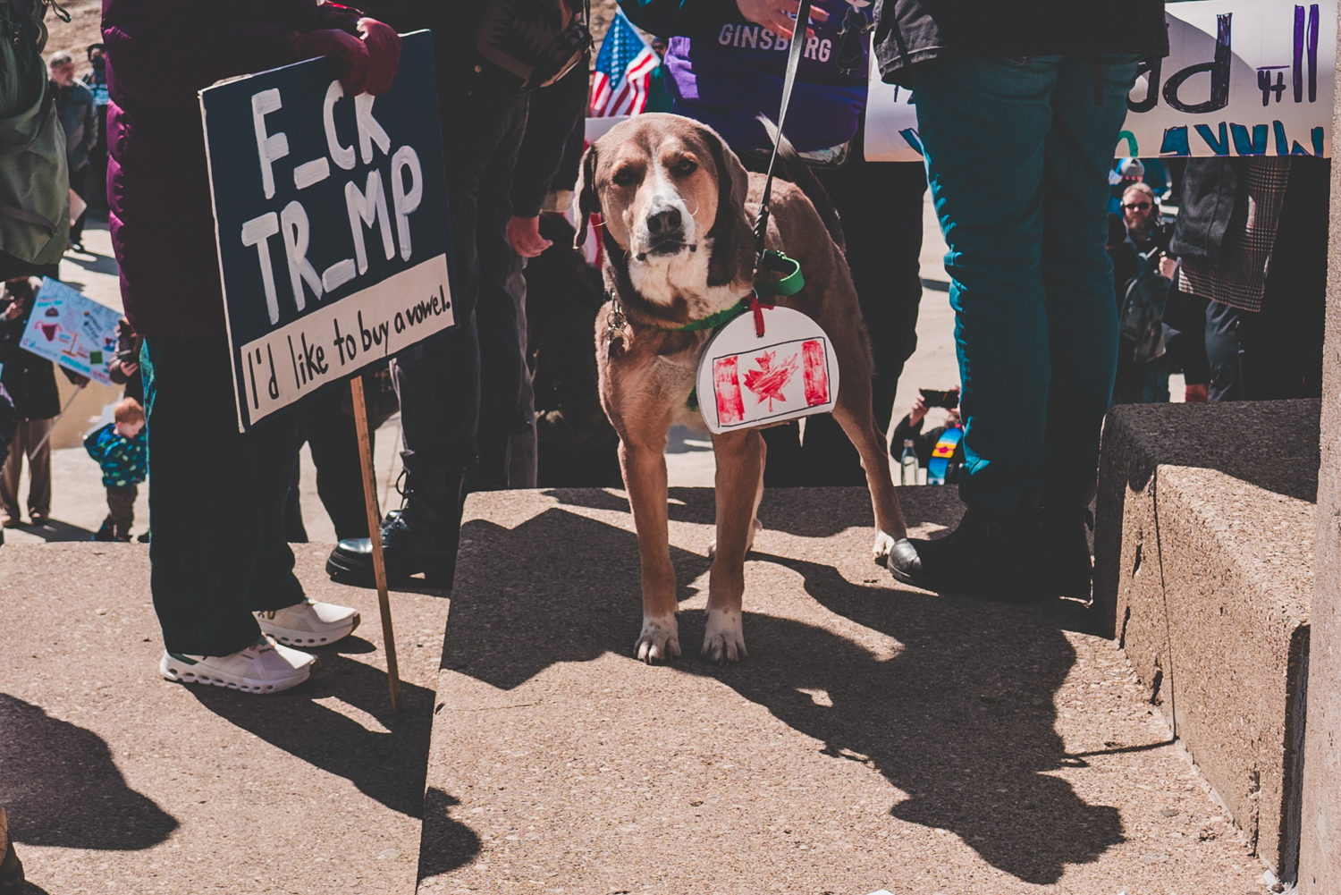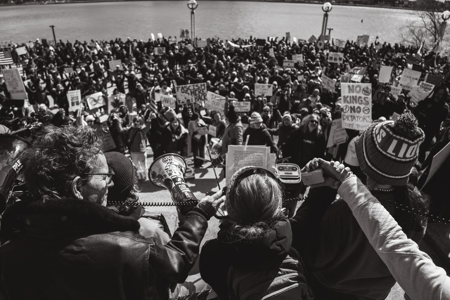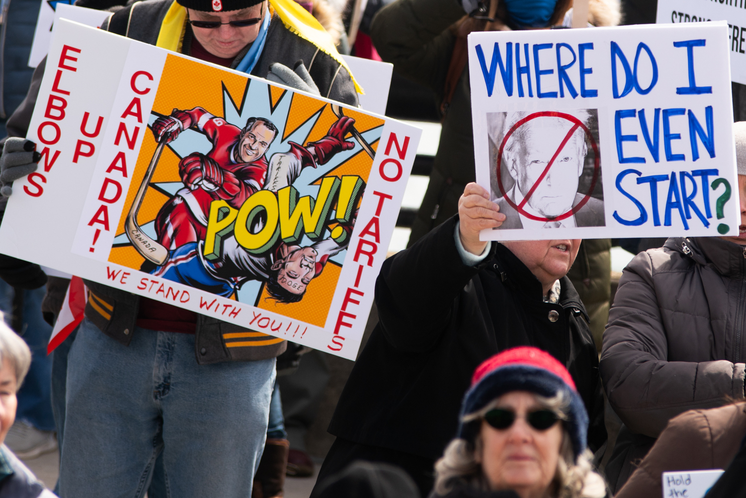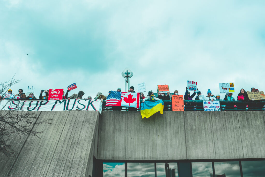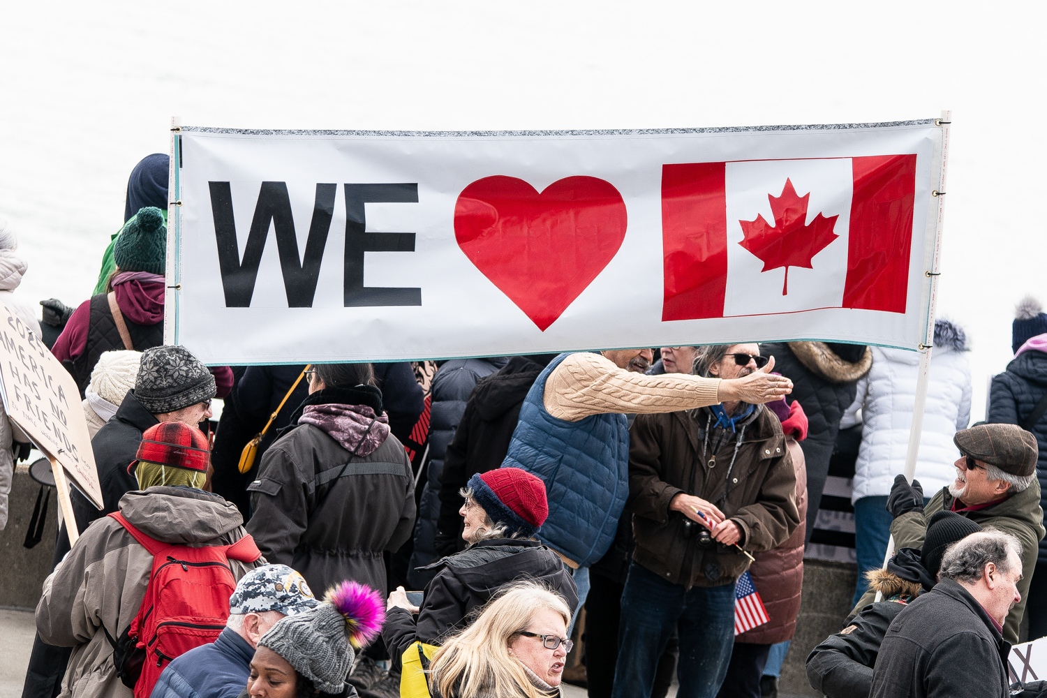 On March 22, 2025, a crowd anywhere from 600 to over 1,000 people flocked to Hart Plaza and across the Detroit River in Canada to protest Donald Trump, Elon Musk, Fascism, Oligarchy, and more.