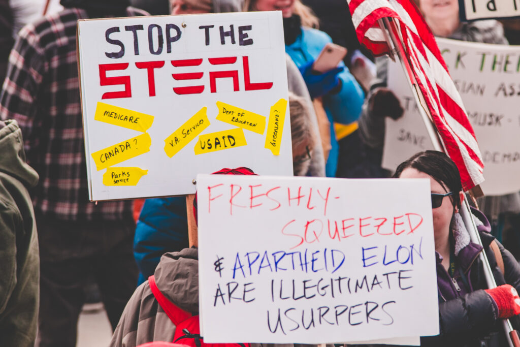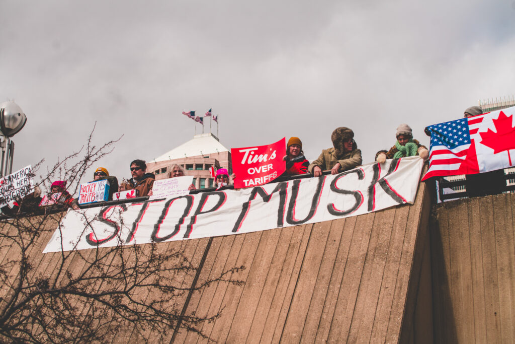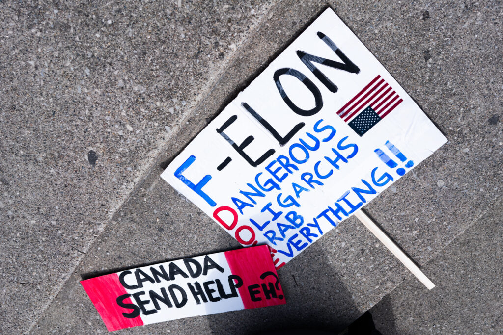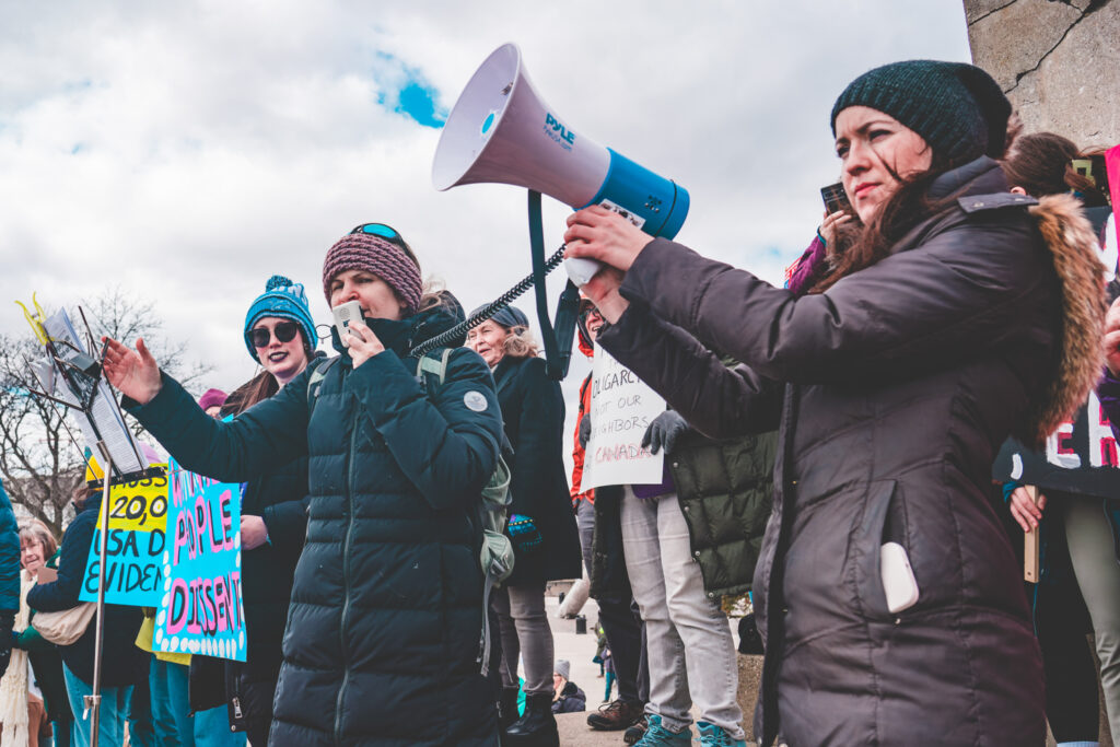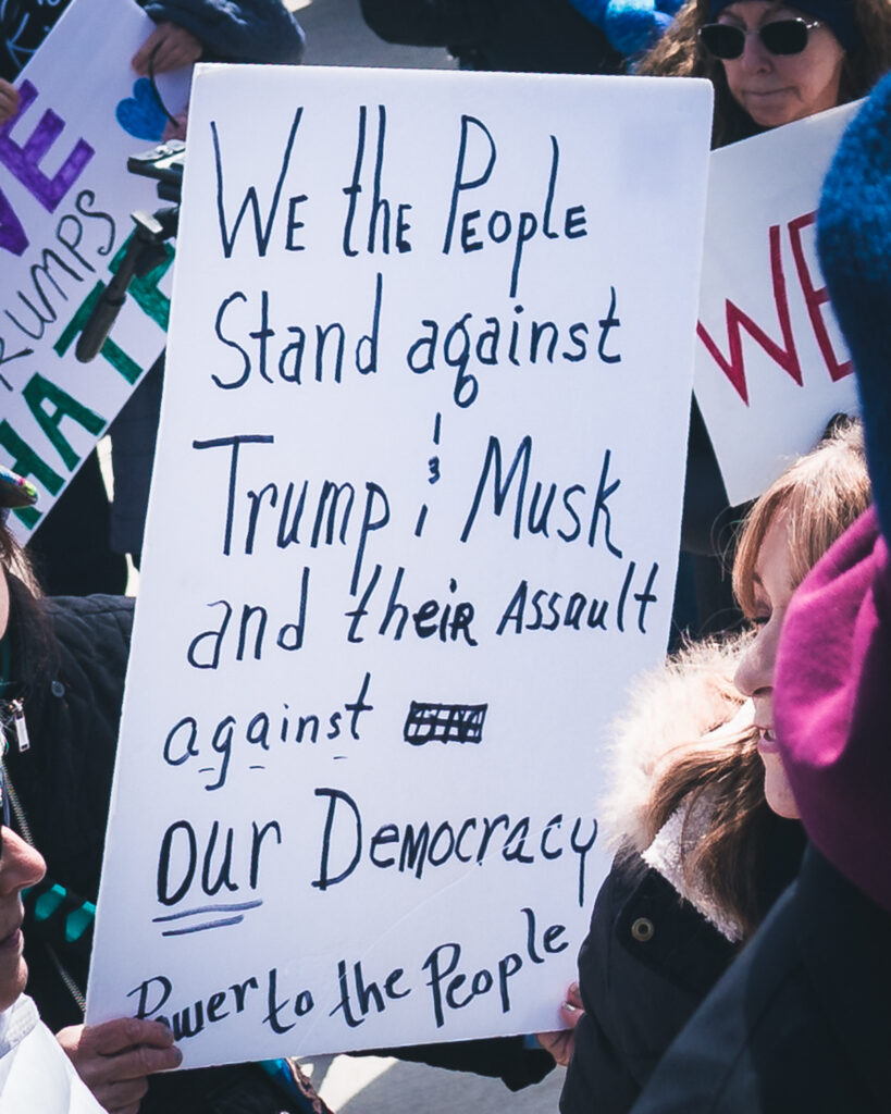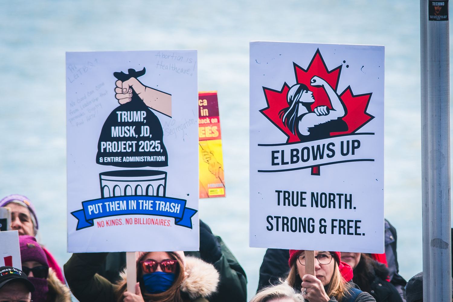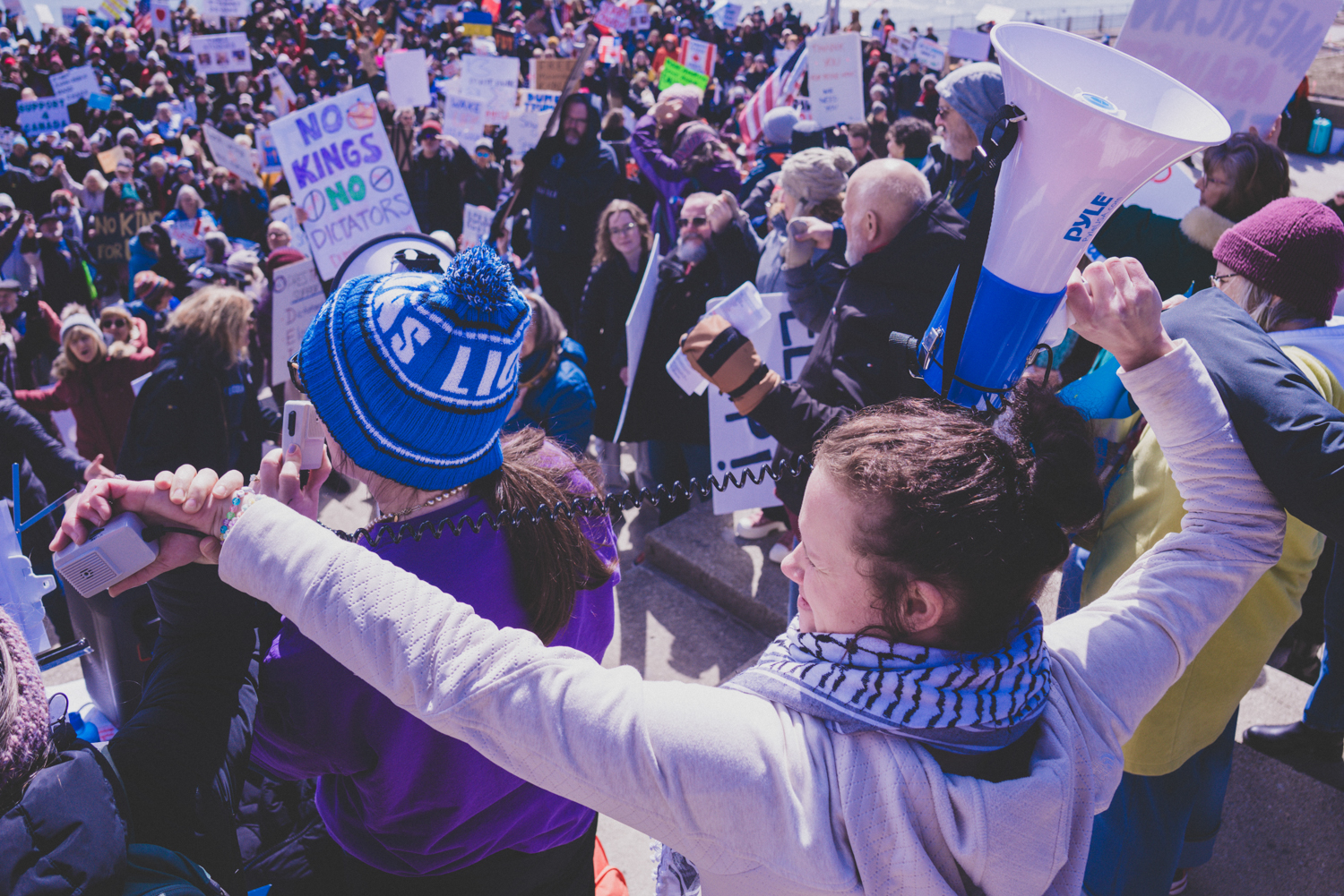 On March 22, 2025, a crowd anywhere from 600 to over 1,000 people flocked to Hart Plaza and across the Detroit River in Canada to protest Donald Trump, Elon Musk, Fascism, Oligarchy, and more.