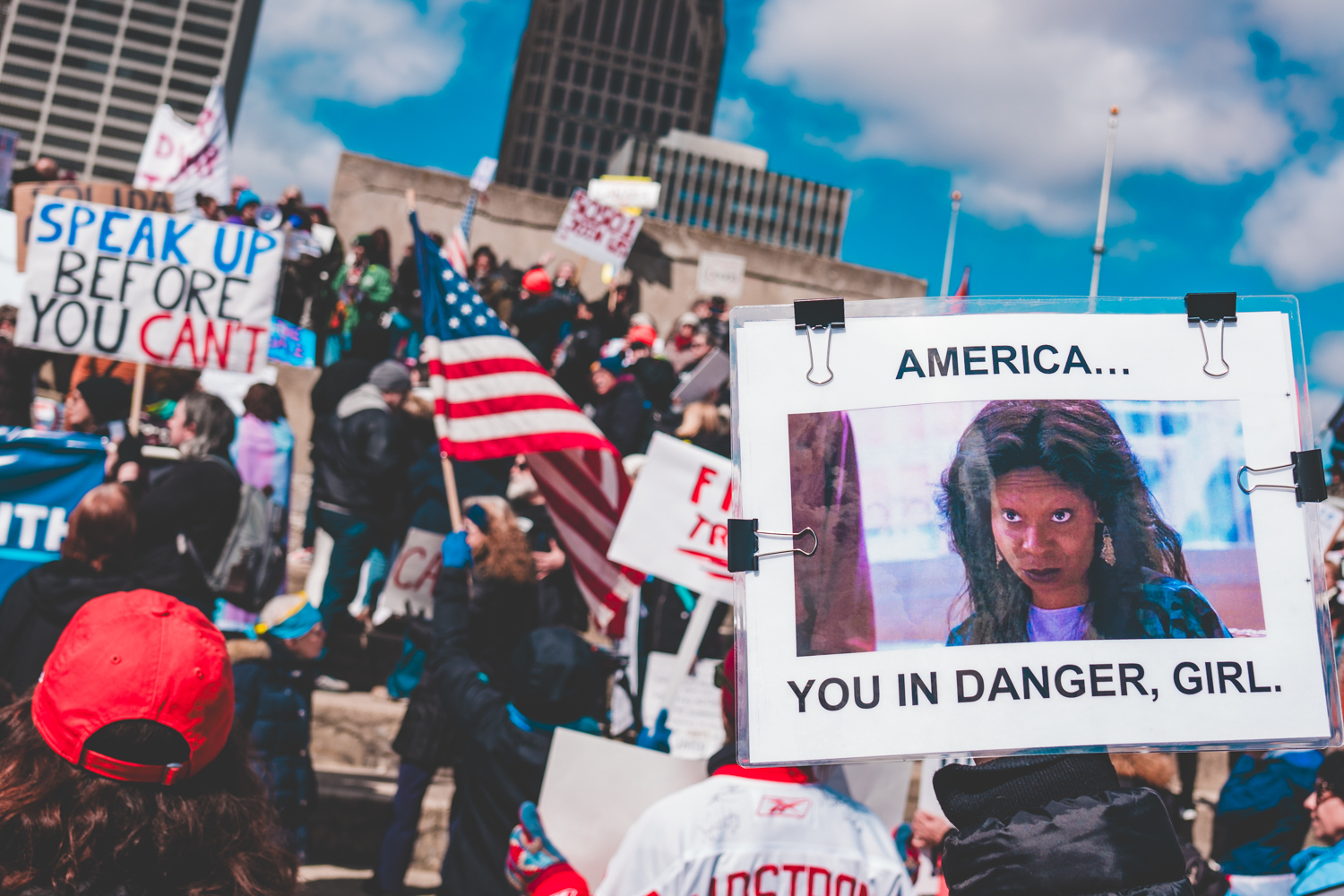 Signs ranged from topics like DEI, ICE/Deportations, Speaking up for Democracy, general displeasure of the current administration, and even some clever ones like a photo of Whoopi Goldberg with the caption “America, you in danger girl” a la 1990’s ‘Ghost.’