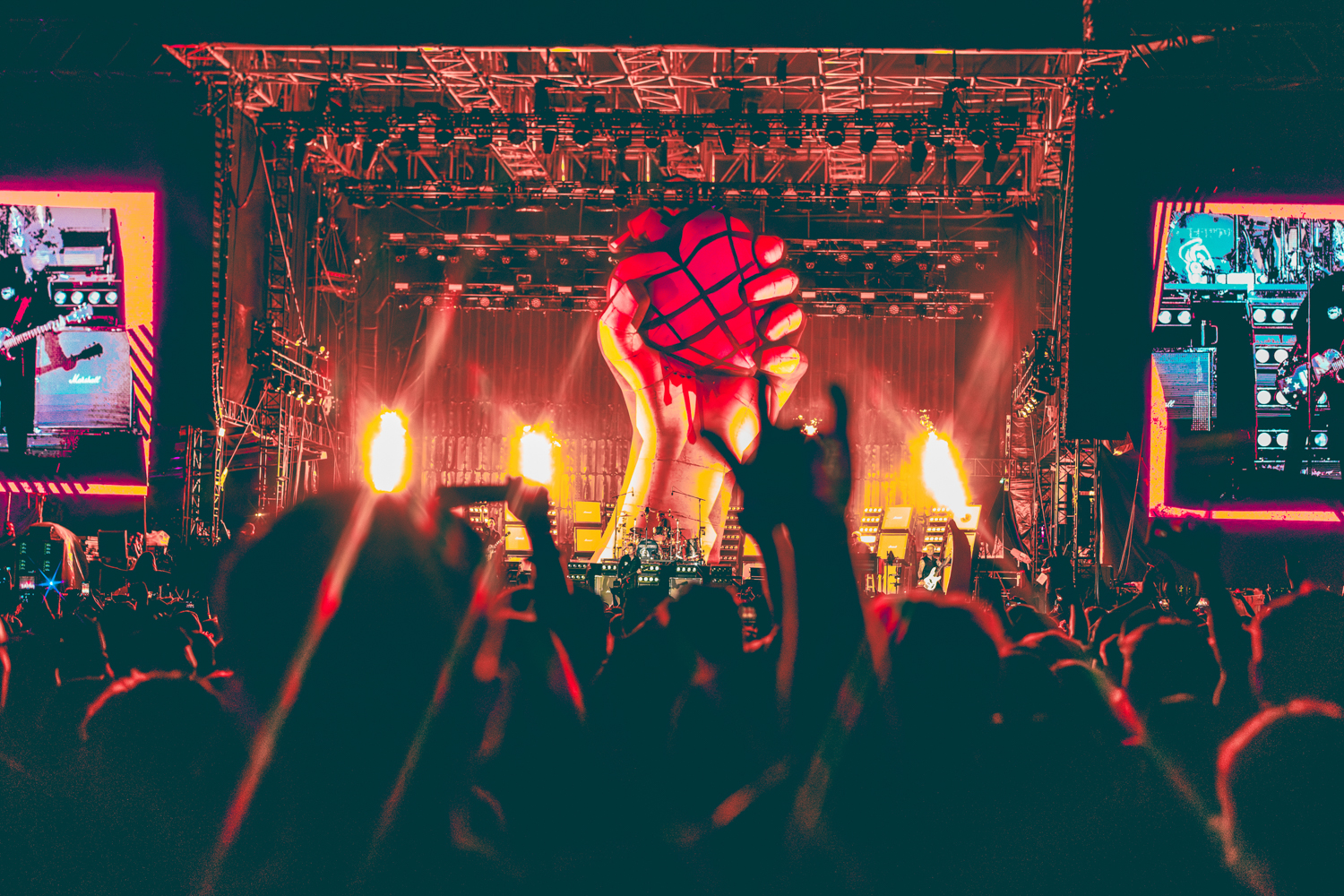 We got to listen to Jawbreaker from the grounds waiting for Green Day, and it was the perfect wind-down for those who weren’t staying for the ‘Dookie’ rockstars. They performed 12 songs, and started with “Ache,” which they have not played live since 2019. Watching the set from the screens, we got to see the fans emoting heavily in the audience, with one man in particular screaming every word (and got a lot of screen time as a result). Given how far away we were, we weren’t able to snag images from this set, but it was worth the listen!