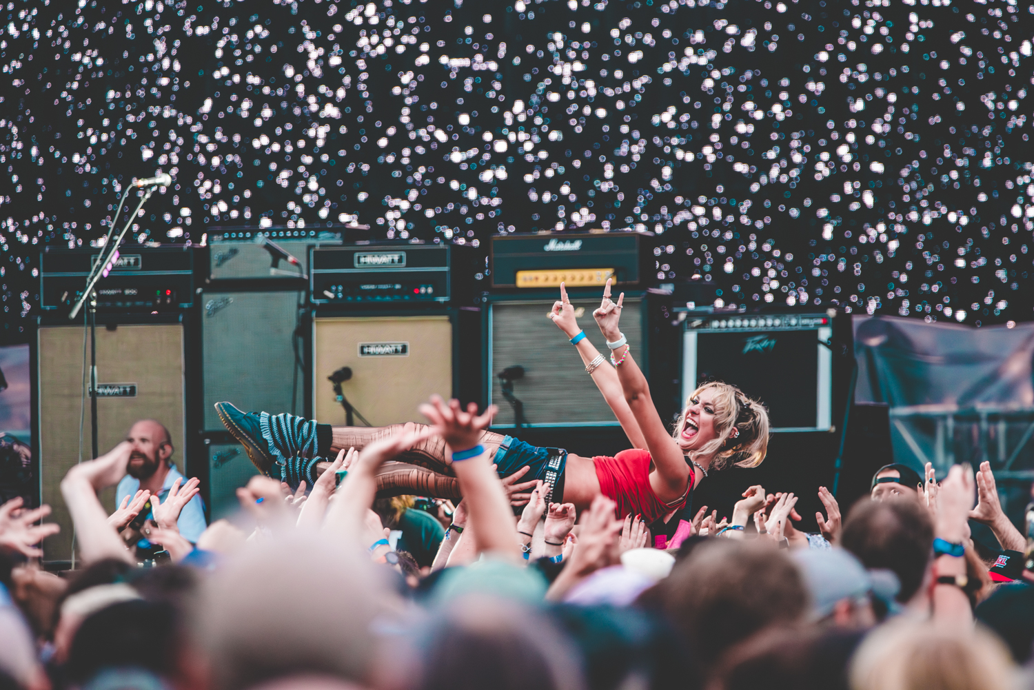 Spanning genres of Rock, Punk, Pop Punk, Hardcore, Satire, and more, trying to tackle all 3 days as one person while trying to catch all your favorite sets proves to be a bit of a challenge, but we were up for it as we descended on Day 1. We primed our ears by catching a snippet of Senses Fail, and by happenstance, we arrived just in time for frontman Buddy Nielsen to give a rousing comment to what’s been going on in America as of late.