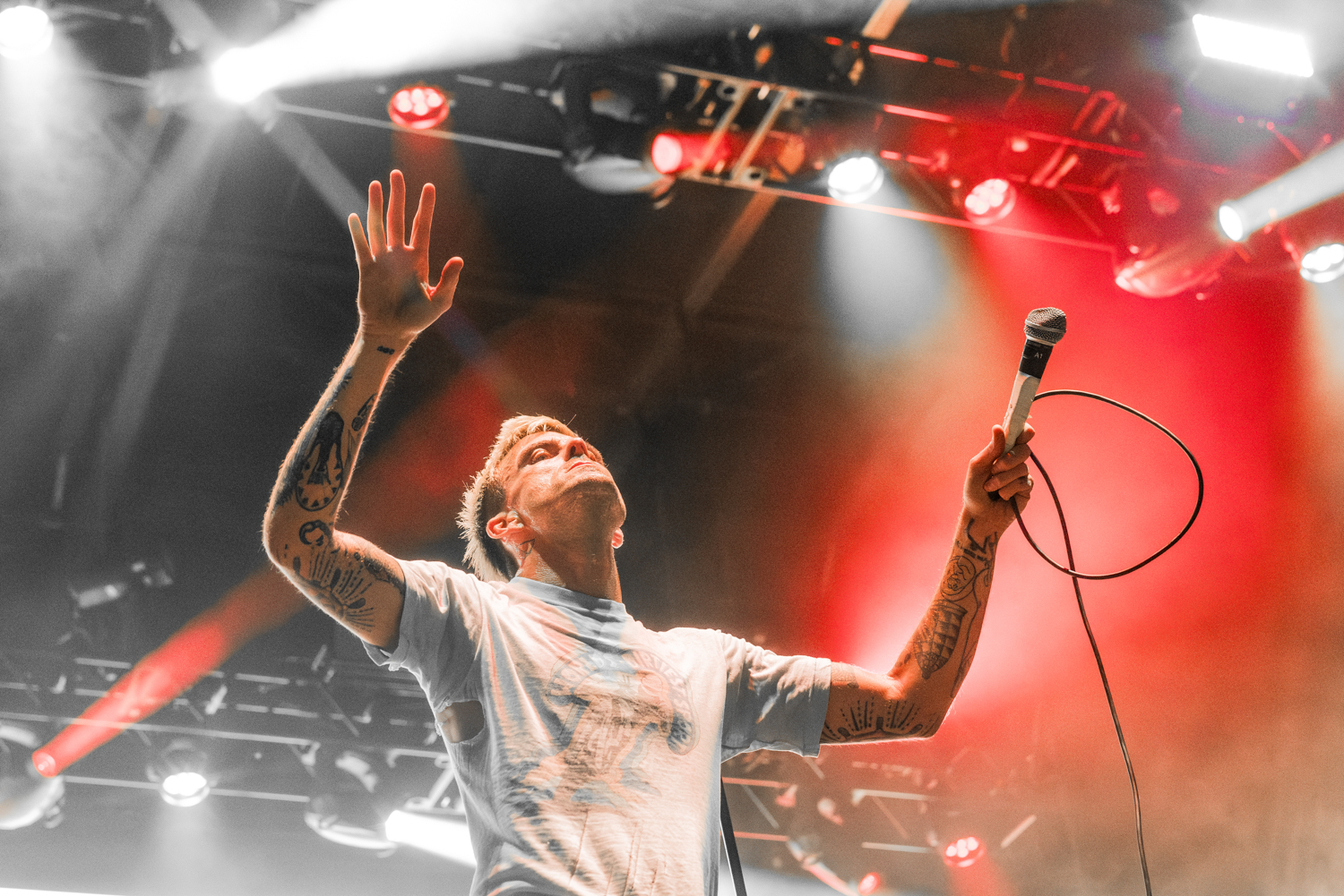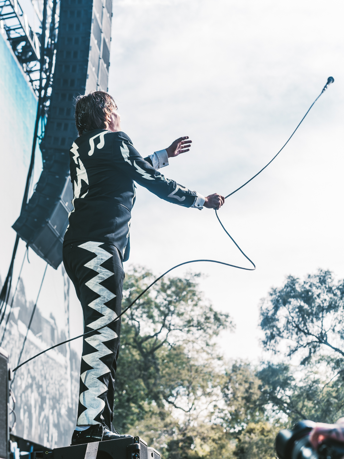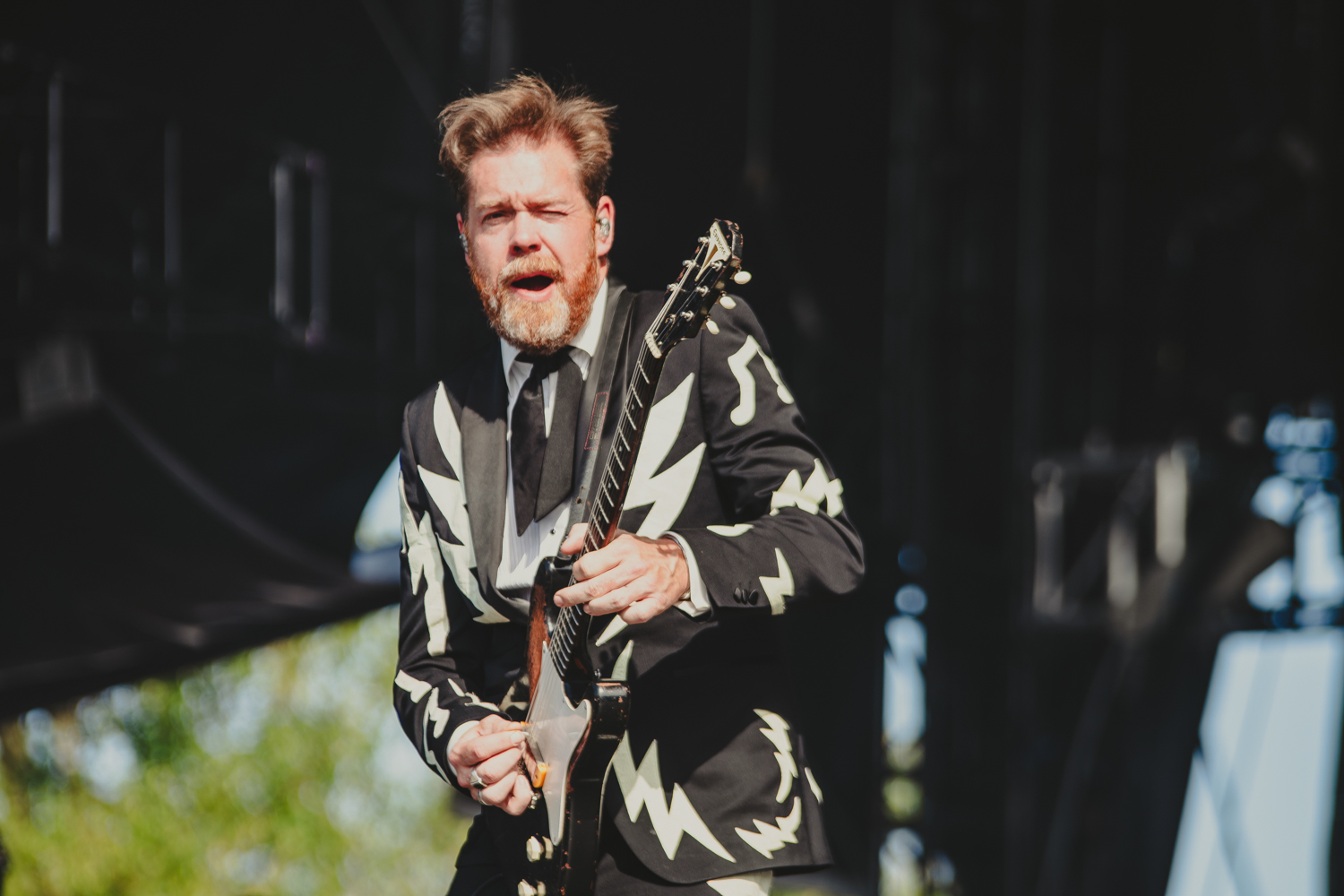 The Hives are iconic if you were into the early 2000s garage rock boom and 2010’s “indie sleaze movement,” as it’s been dubbed by the internet. During the times of hyper-colorful iPod commercials, these guys fit right in, but that doesn’t mean that they visibly give a throwback vibe to their performance. Frontman Howlin’ Pelle Almqvist hopped on the mic during the first three songs to note that he wasn’t being as physical in terms of his crazy jumps and stuff due to having an injury with his ankle, but that barely stopped him from standing in different sketchy areas of the stage like speakers, swinging his mic around, and even doing a few high kicks. The band’s energy is still unmatched with their performance and threw down tracks we knew and loved like “Hate To Say I Told You So,” “Tick Tick Boom,” and “Come On!” It made us get a hyper-focus on their setlist after we returned home to Detroit for sure.