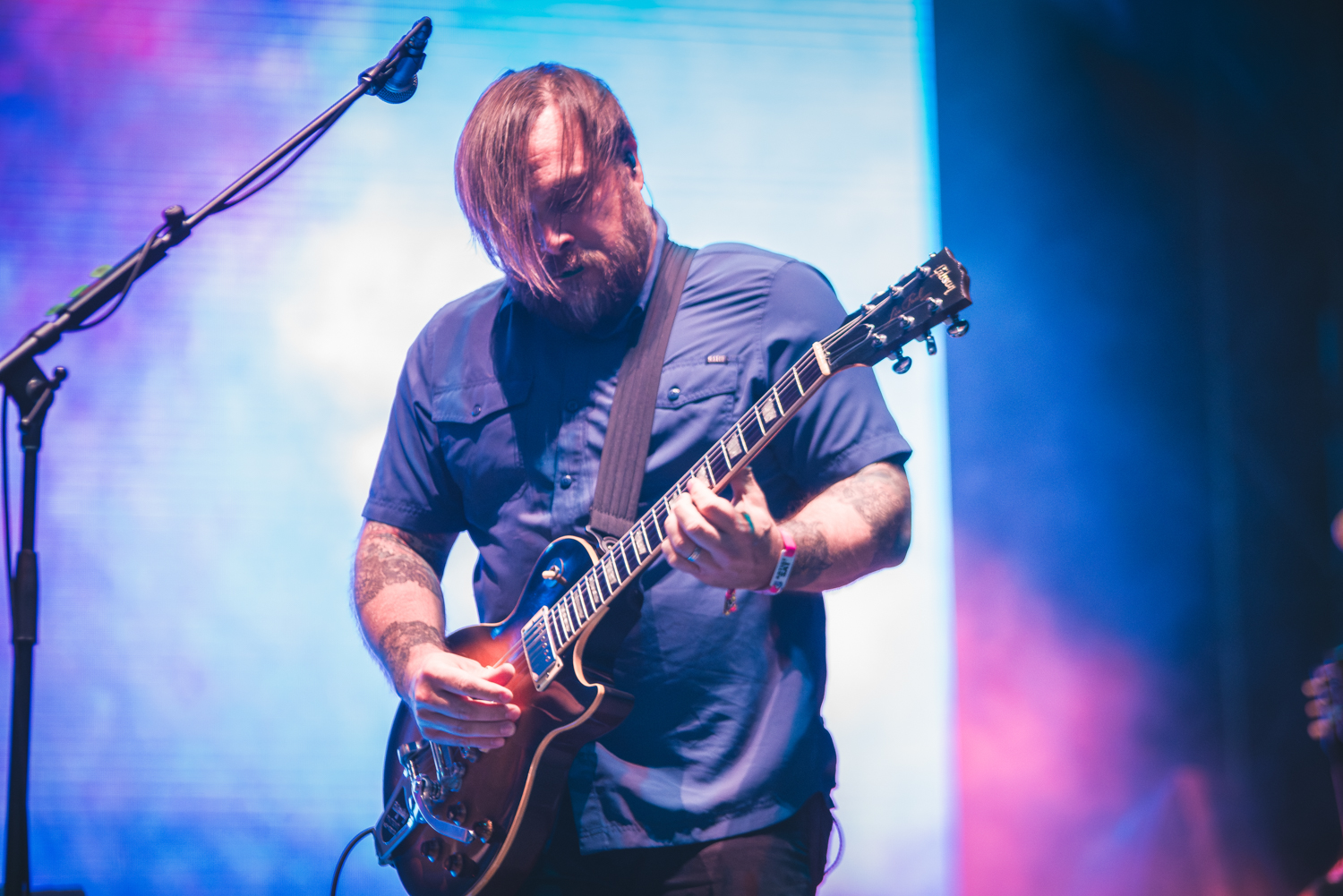 Rival Sons is a staple of our hometown radio station, so we’ve caught them once before at Pine Knob, but given that they were on tour with Clutch this season, we were able to snag a quick song or two before rushing our way to the next set. They have a rockabilly-esque style in their performance and delivery, while also somehow fringing a throwback revival to that sound while also feeling slightly 70’s retro. Some of the highlight tracks from their set included “Do Your Worst,” “Electric Man,” and “Secret.”
