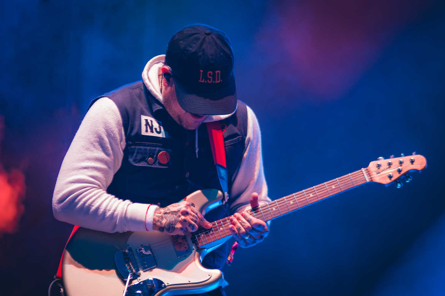 We have our own special story with this set. A few weeks before the set, Green had sent out a post on Threads that he didn’t encourage people to crowd surf, but if they did, he asked for people to bring vegetarian snacks for him. Ami Nicole ACRONYM (me) took this to heart and was able to get veggie straws and vegan cookies to him via a staff member, to which Green confirmed he received them and liked the cookies the best. Additionally, I shared our teaser photos on Instagram, and the L.S. Dunes account, Anthony Green and Frank Iero (My Chemical Romance) shared the post to their stories. Thanks, fellas!