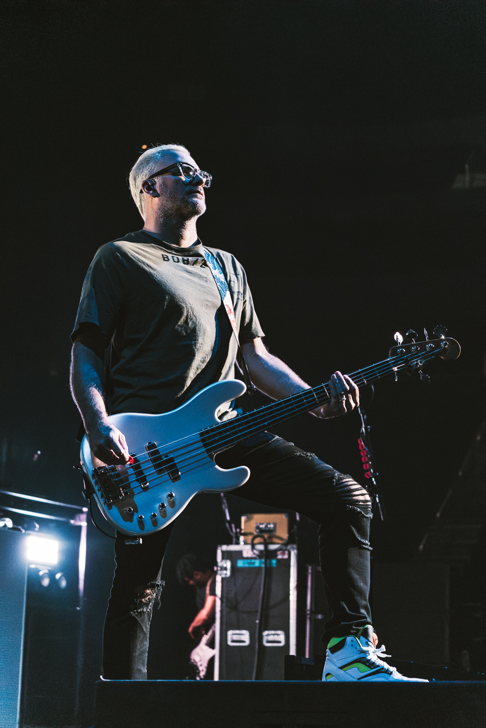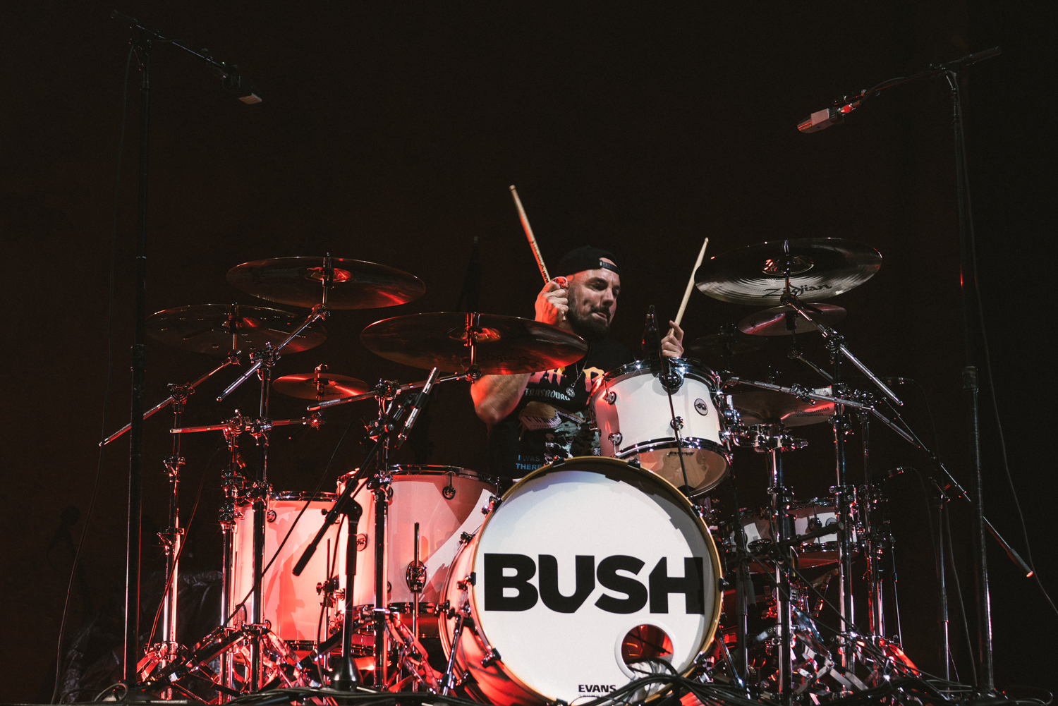 Shinedown are the kings of performance. While you wouldn’t expect an arena rock band without a gimmick to be theatrical, Shinedown puts on the dramatics while still maintaining their rockstar flow. As we’ve mentioned in previous paragraphs, the staging for the ‘Dance, Kid, Dance’ tour was intricate, with platforms that went in a couple of different directions to create branches for each member to walk out to and perform at for specific songs. As photographers, we were not granted to be in this area during Shinedown’s performance, but we got to see how the sausage was made during the performance from Bush.