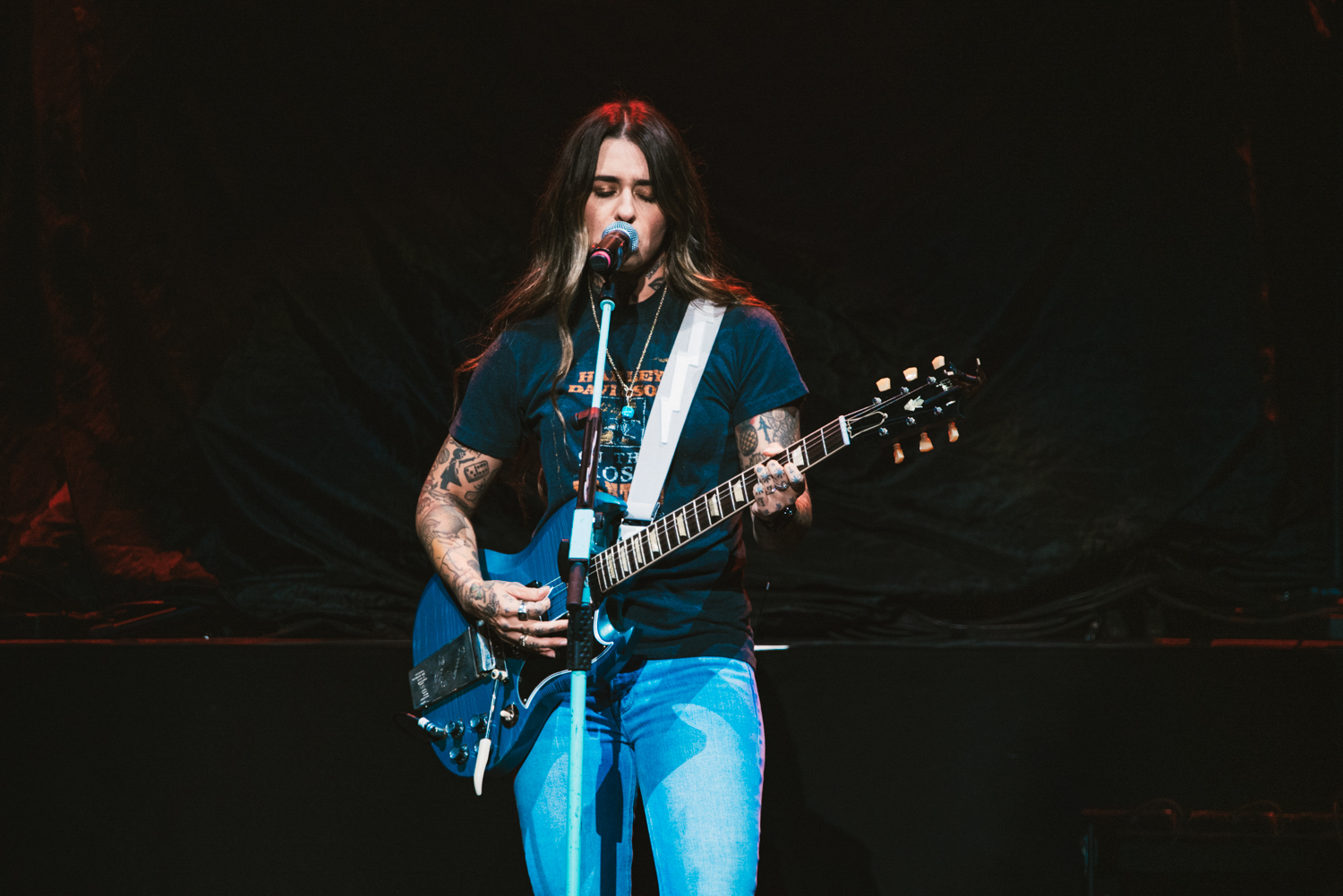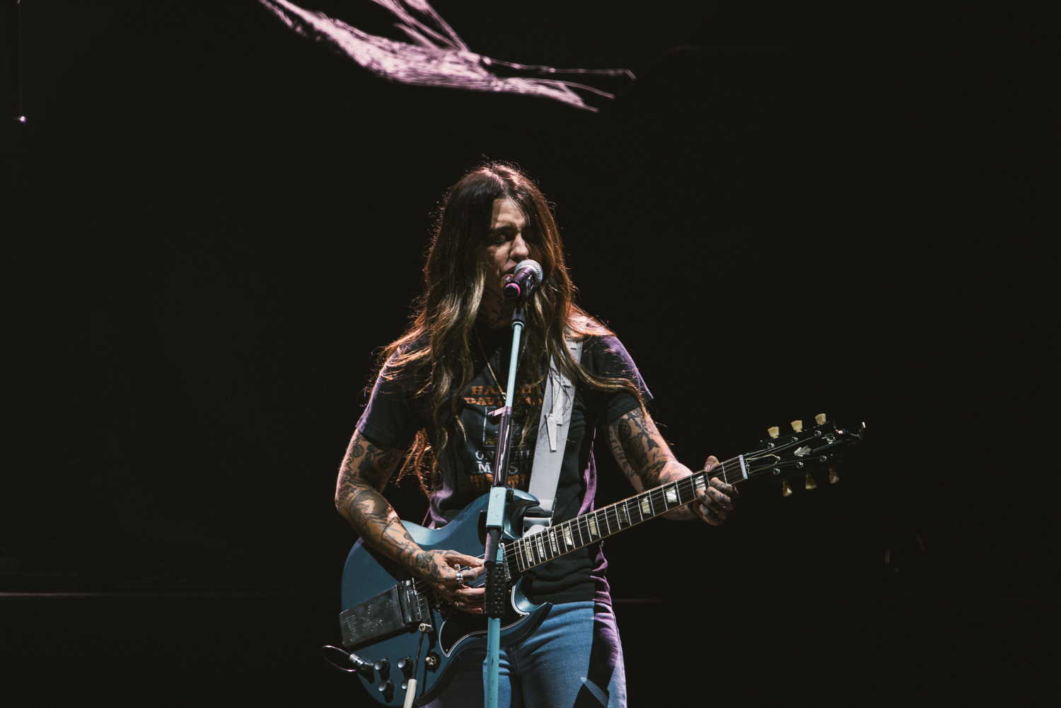 This was our first exposure to Morgan Wade, as we don’t partake a ton in the Country Music label, but with the southern-esque roots that Shinedown has, it’s not a surprise that they brought on someone who fringes country onto the tour. There’s not a ton out there on her other than her early days, but one of her notables is that she also opened for Alanis Morissette in 2024. She held her own with her backing band, but also walked the Shinedown-created stage that extended her out to the crowd as the stand-out performer.