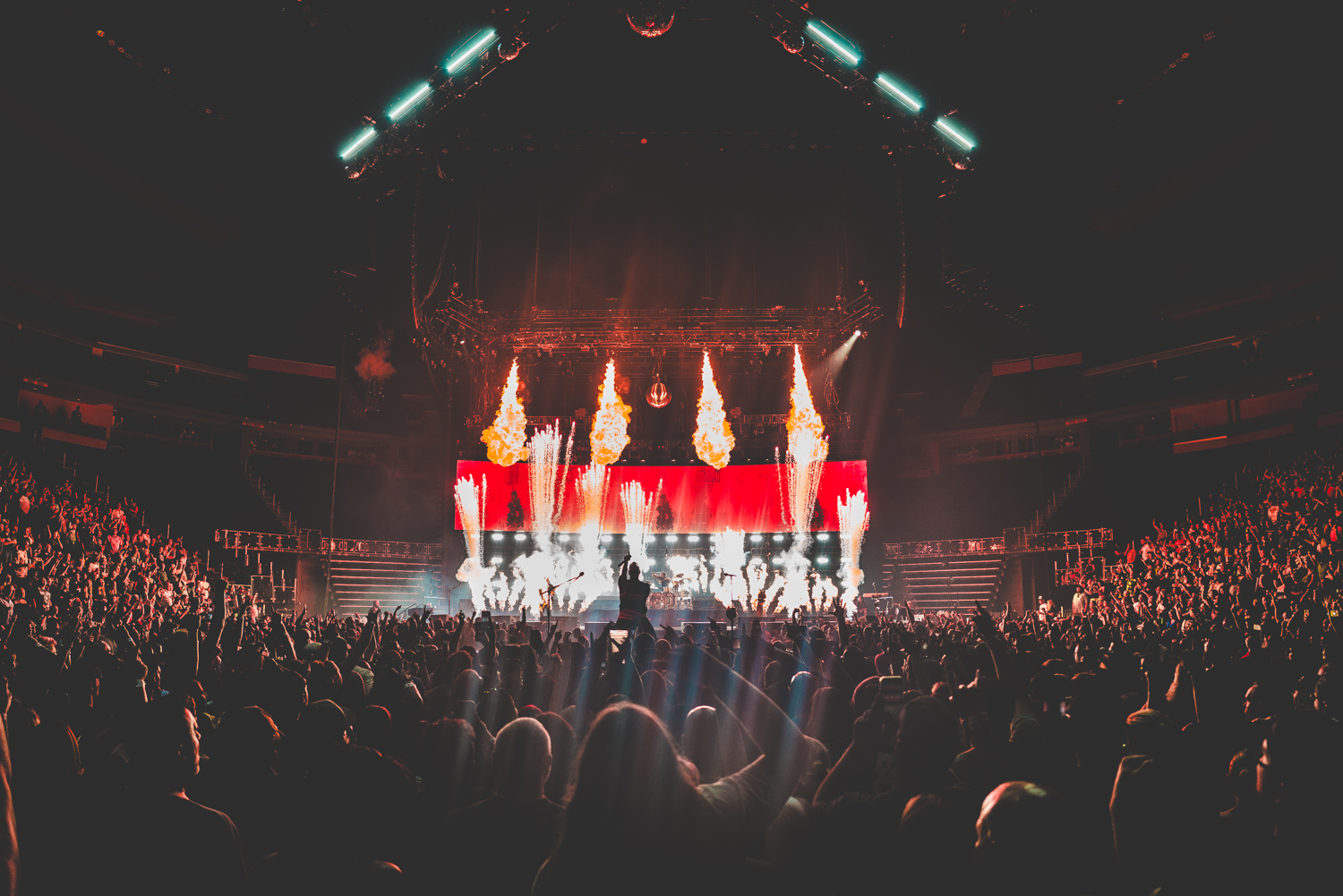 The band played their title track for the tour “Dance, Kid, Dance,” followed by “Cyanide Sweet Tooth Suicide,” which according to Setlist.FM is the first time they’ve played that live since 2018, and it was a debut for the tour in general. “Cut The Cord” was the final song the press was able to witness, with pyro on cue at the high spots of the song. If you’re a veteran of a Shinedown concert, you know when to expect the loud pops, but it’s never boring or predictable due to the performance itself, the fans, and more. From where we were allowed to photograph, fans were directly in front of us, and as you can see from the images, many people had their hands in the air, creating a more intimate experience for everyone involved.