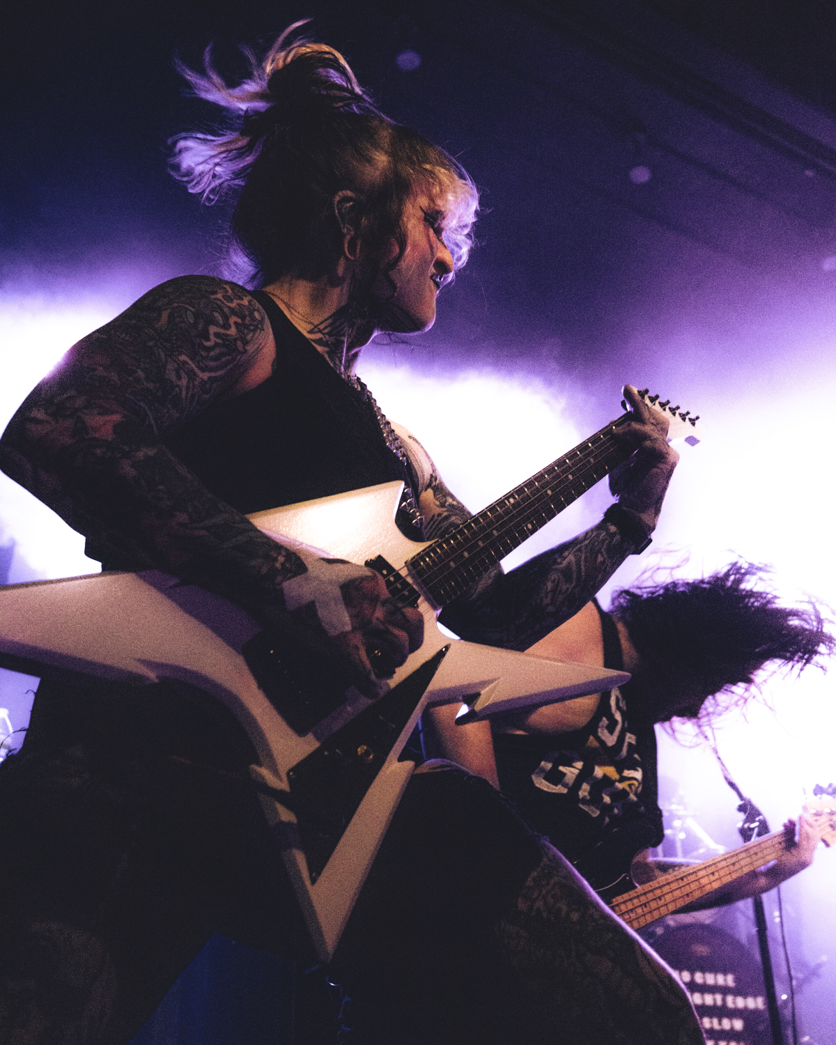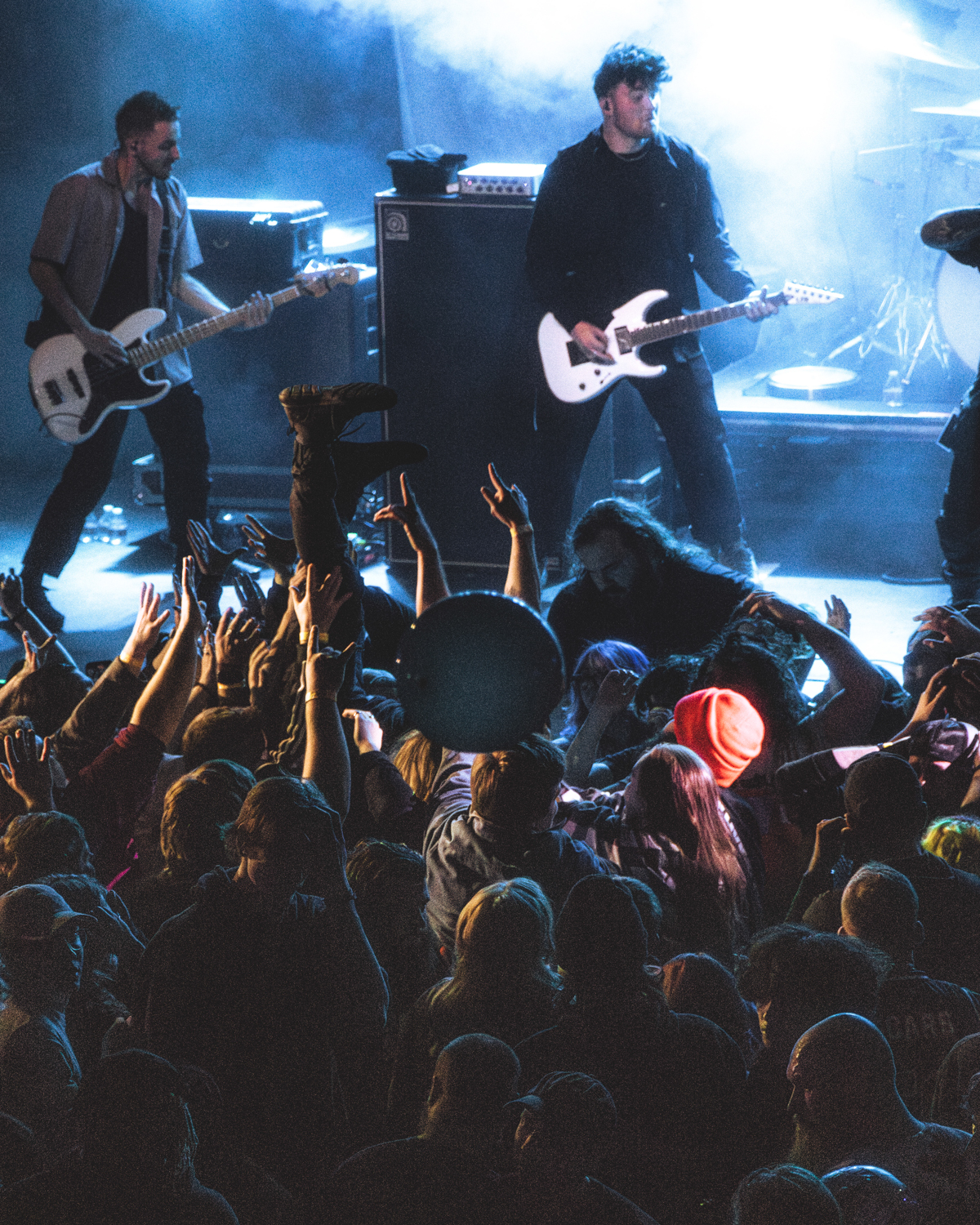 With the room already pulsating with chaos, perhaps with early physical signs of some pit involvement starting to show themselves, Varials took over and kept the intensity peaking. “Deadweather” pulled the audience in with eerie melodies before crashing into a wall of sound. Their ability to balance melody with sheer brutality was on full display as “The Cycle of Violence: Chapter 1” and “Anything to Numb” sent shockwaves through the venue. The band’s frontman savagely explored the stage, generating a raging presence from the audience and feeding off their energy, throwing it right back into the room. This was the necessary dive in the deep end to prepare for the night’s opener.