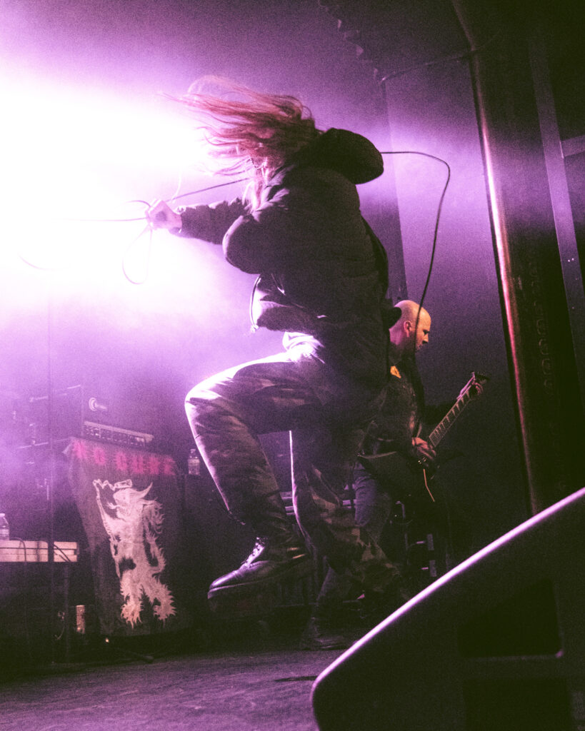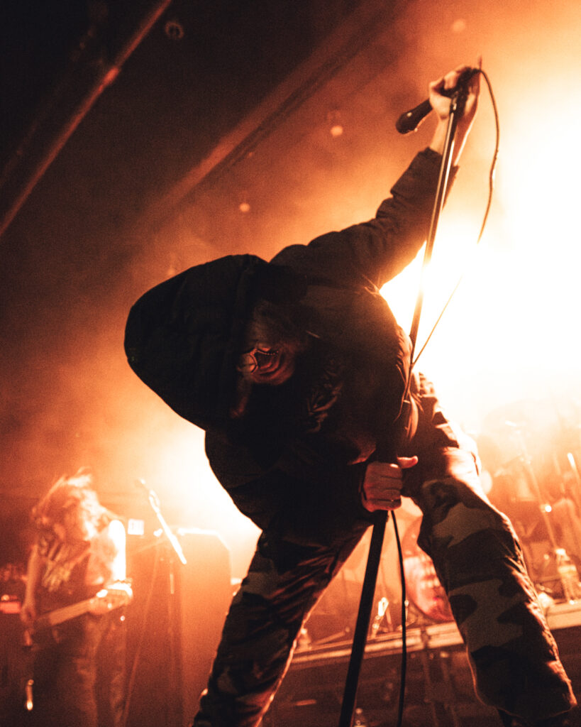As he stands mostly still, slowly swaying and eyes closed and nodding his head to the beat ringing out, the remaining members fill the dimly lit stage. These were the few remaining safe seconds before the opening notes to “Backfire” led the night into the final plunge into pure carnage. Tracks like “Bloodsucker” and “On the Verge” had the crowd particularly vocal, which is a testament to their lung capacity in the wake of Round 4 of a sonic bludgeoning. Spirits were high and spin kicks were even higher. Even as exhaustion set in, the crowd gave everything they had left, turning the final moments of the night into one last surge of chaos.